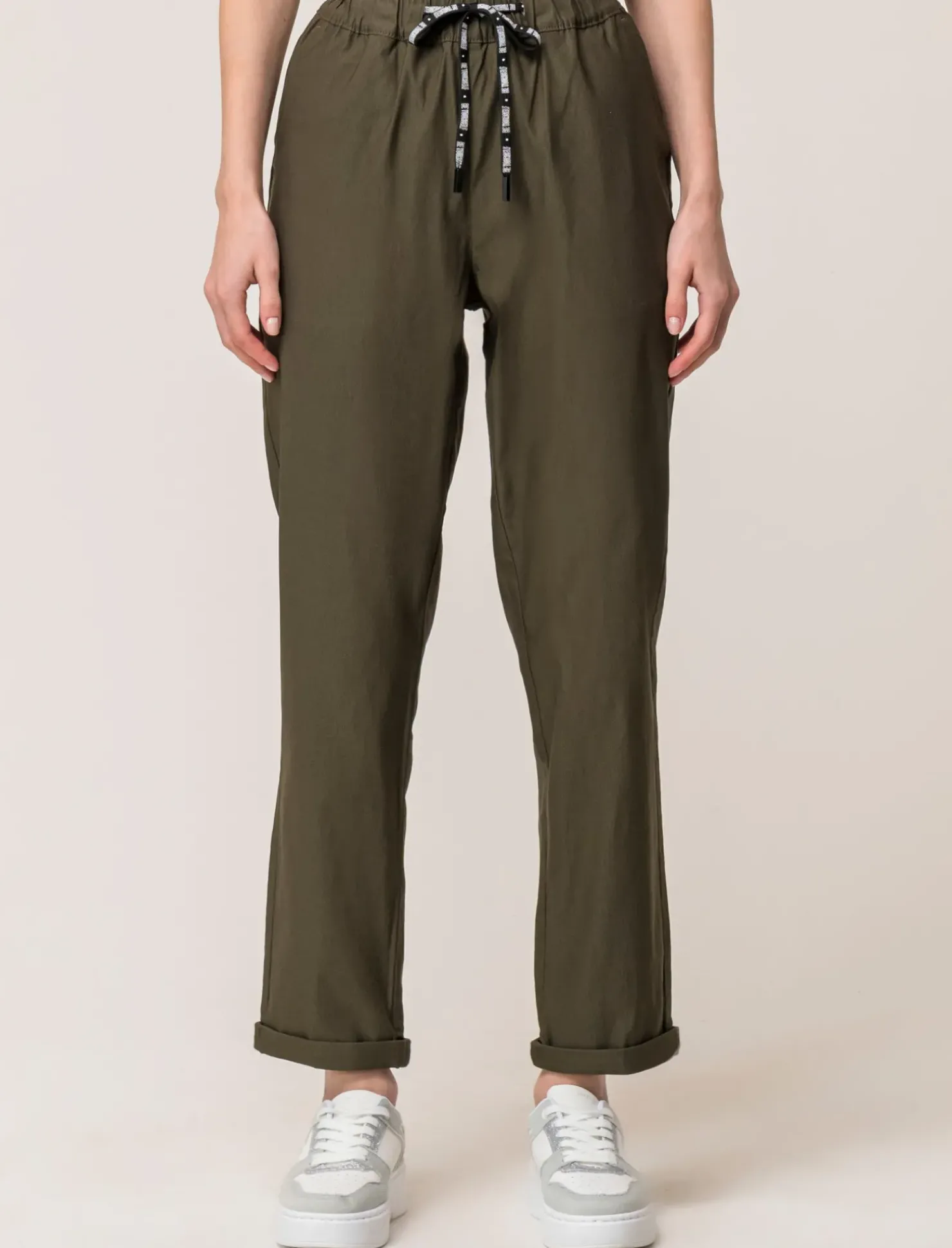 Piazza Italia Panatole modello jogger in tessuto elasticizzato con elastico e coulisse tampata in vita – Ve.milit. Verde Shop