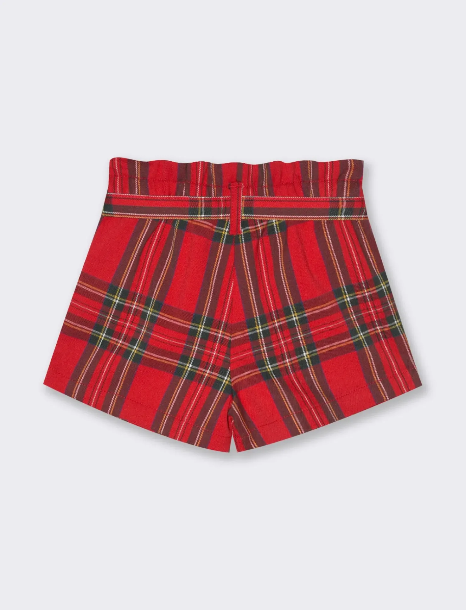 Piazza Italia Pantaloncini natalizi in tessuto a quadri con cintura e borsetta applicata – Rosso Store