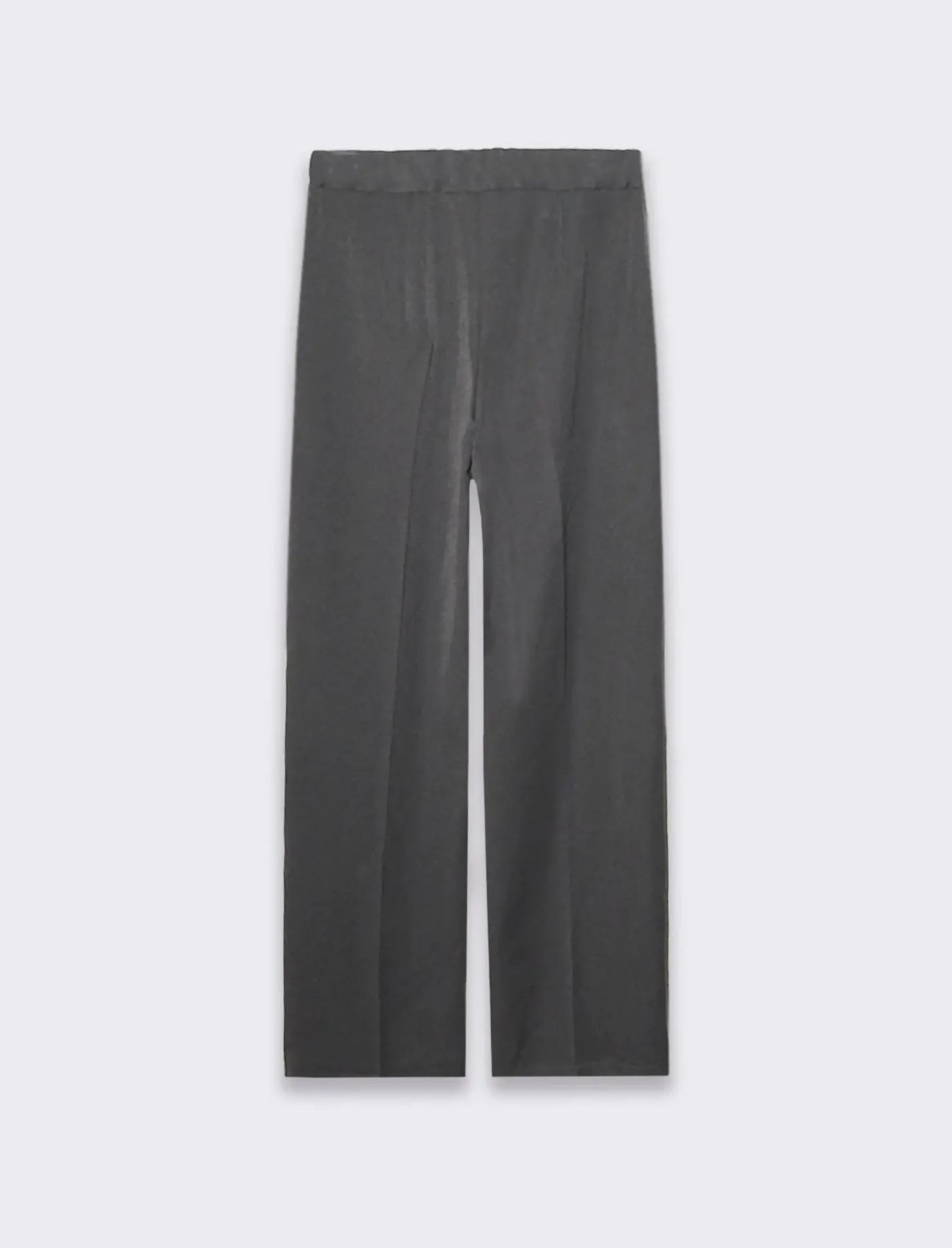 Questi pantaloni presentano una vita alta, che slancia la figura e aggiunge un tocco di raffinatezza. La chiusura con doppio bottone e zip non solo garantisce una vestibilità sicura, ma aggiunge anche un dettaglio stilistico interessante. Sul retro, un elastico in vita assicura un comfort ottimale, adattandosi perfettamente alla forma del corpo senza stringere. Questo dettaglio rende i pantaloni ideali per essere indossati tutto il giorno, mantenendo sempre una sensazione di comodità. Le tasche americane davanti offrono praticità e un tocco casual. Questi pantaloni sono versatili e possono essere abbinati a una camicia elegante per un look da ufficio Il prodotto è di colore Grigio