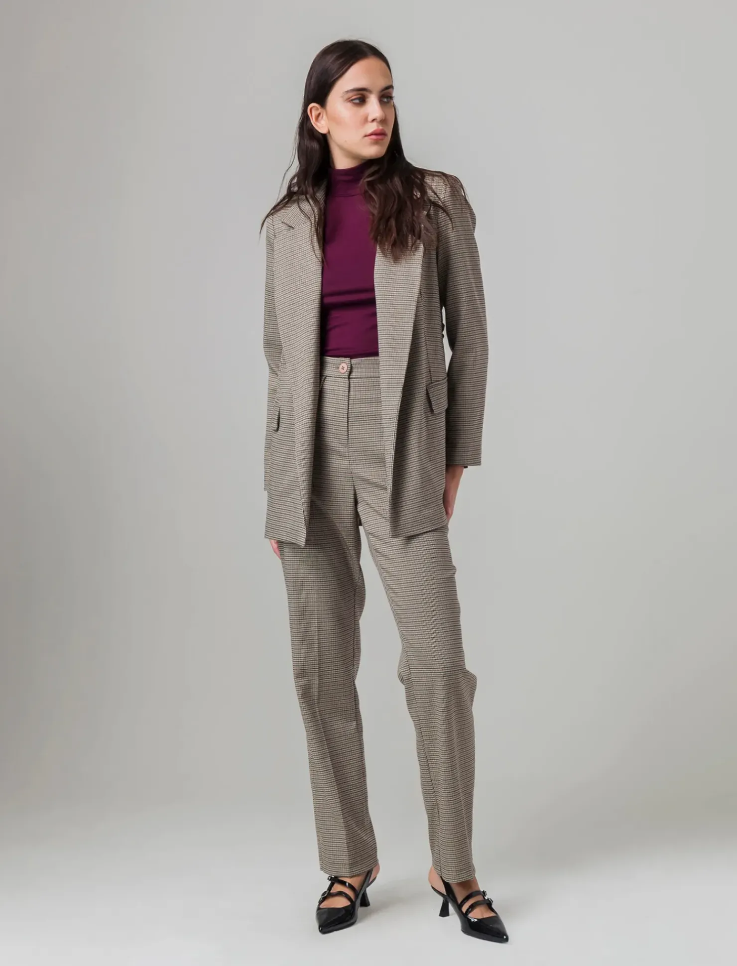 Pantalone elegante da donna con cintura in vita e pratiche tasche laterali. Realizzato con tessuto di alta qualità, perfetto per un look casual chic. Ideale per completare il tuo outfit in ogni occasione, dalla giornata in ufficio alle serate fuori con le amiche. Il prodotto è di colore Marrone tabacco