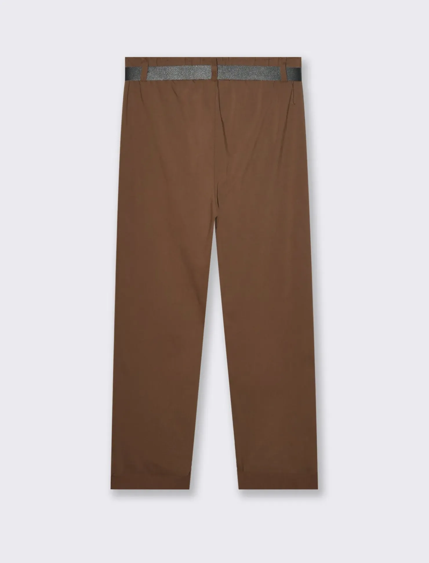 Le tasche a taglio sui fianchi sono pratiche e discrete, perfette per riporre piccoli oggetti come chiavi o telefono senza compromettere la linea pulita del design. Questo tipo di pantalone è ideale sia per un look casual che per occasioni più formali, grazie alla sua versatilità e al suo design curato. Il prodotto è di colore Marrone tabacco