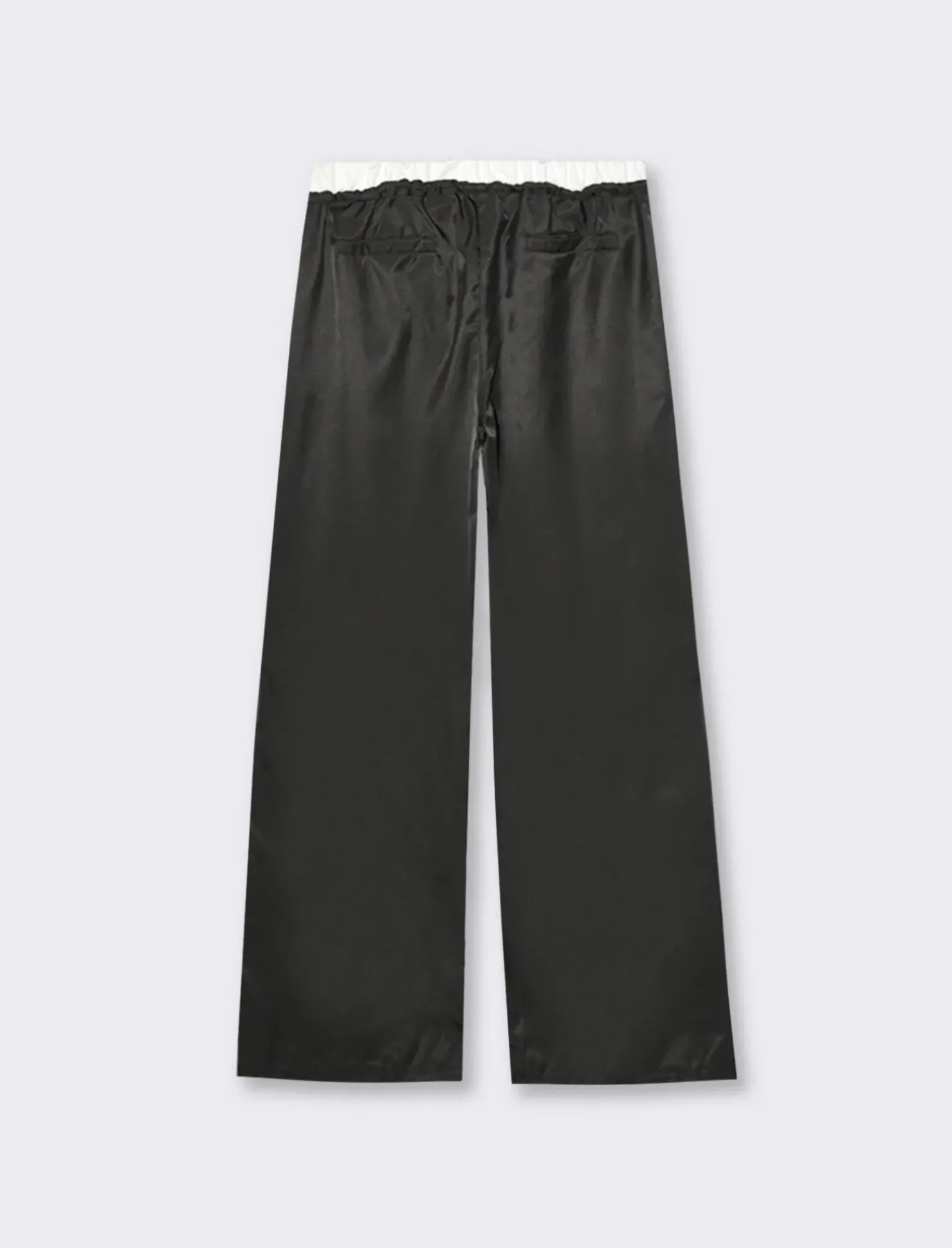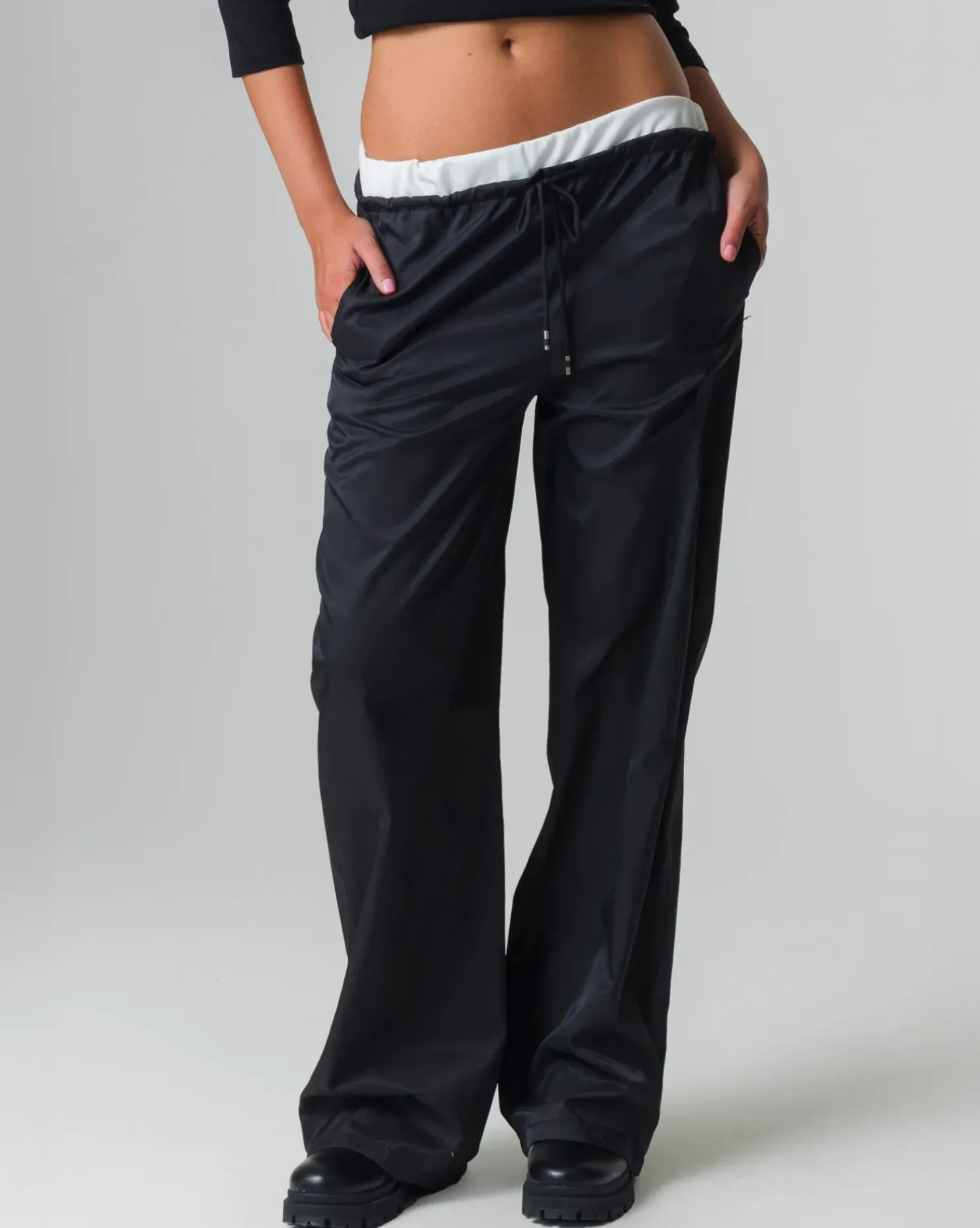 Questi pantaloni presentano un inserto in vita che aggiunge un dettaglio stilistico e funzionale. La vita elastica con coulisse permette di regolare la vestibilità, garantendo comfort e adattabilità per tutto il giorno. Le tasche all’americana sui fianchi offrono praticità e un tocco casual, perfette per riporre piccoli oggetti o semplicemente per aggiungere un elemento di stile rilassato. Sul retro, le tasche a friso aggiungono un dettaglio raffinato e discreto, mantenendo la linea pulita e sofisticata del capo.Questi pantaloni sono ideali per diverse occasioni: possono essere abbinati a una camicia elegante per un look da ufficio, oppure a un top più casual per un outfit da tempo libero. Il prodotto è di colore Nero