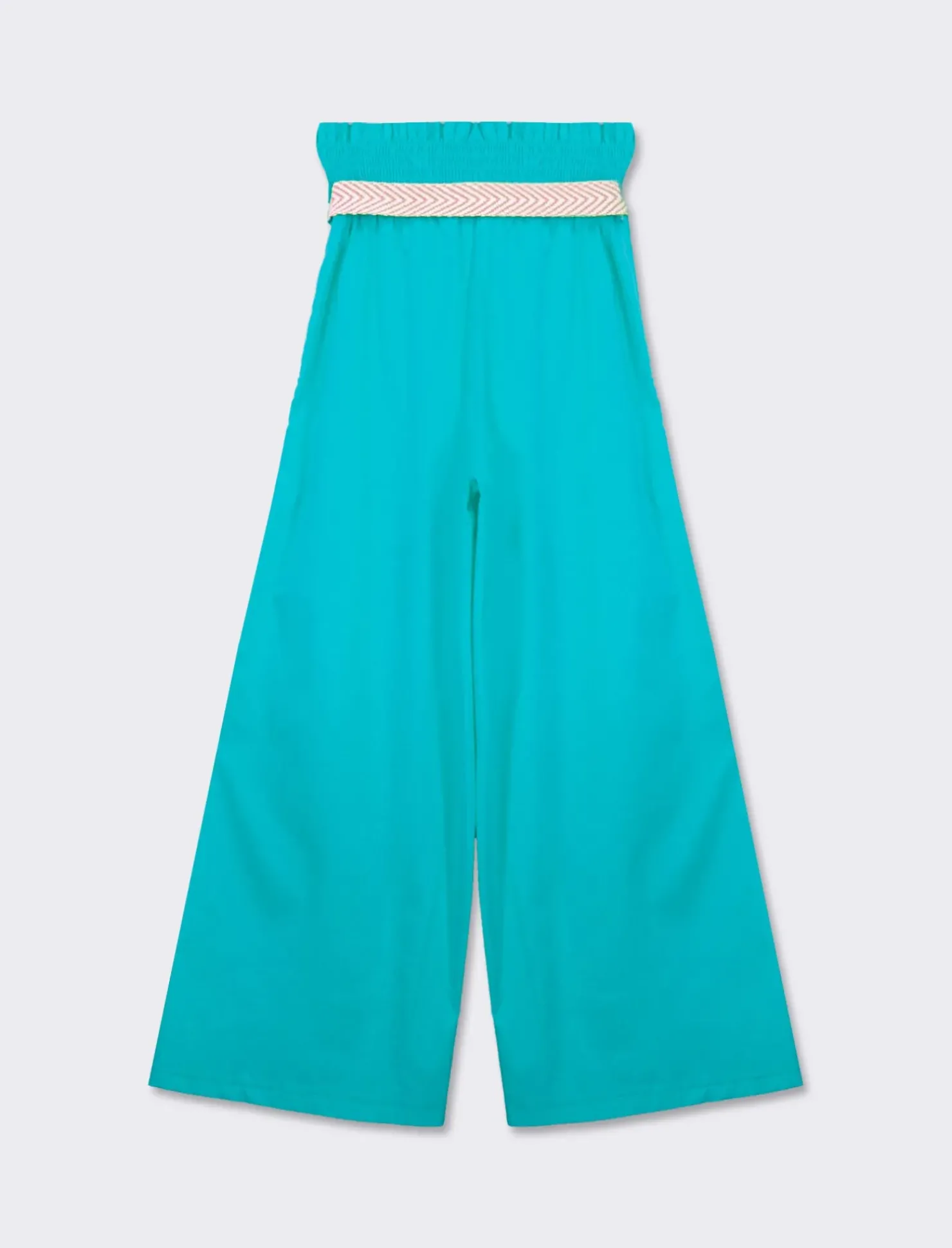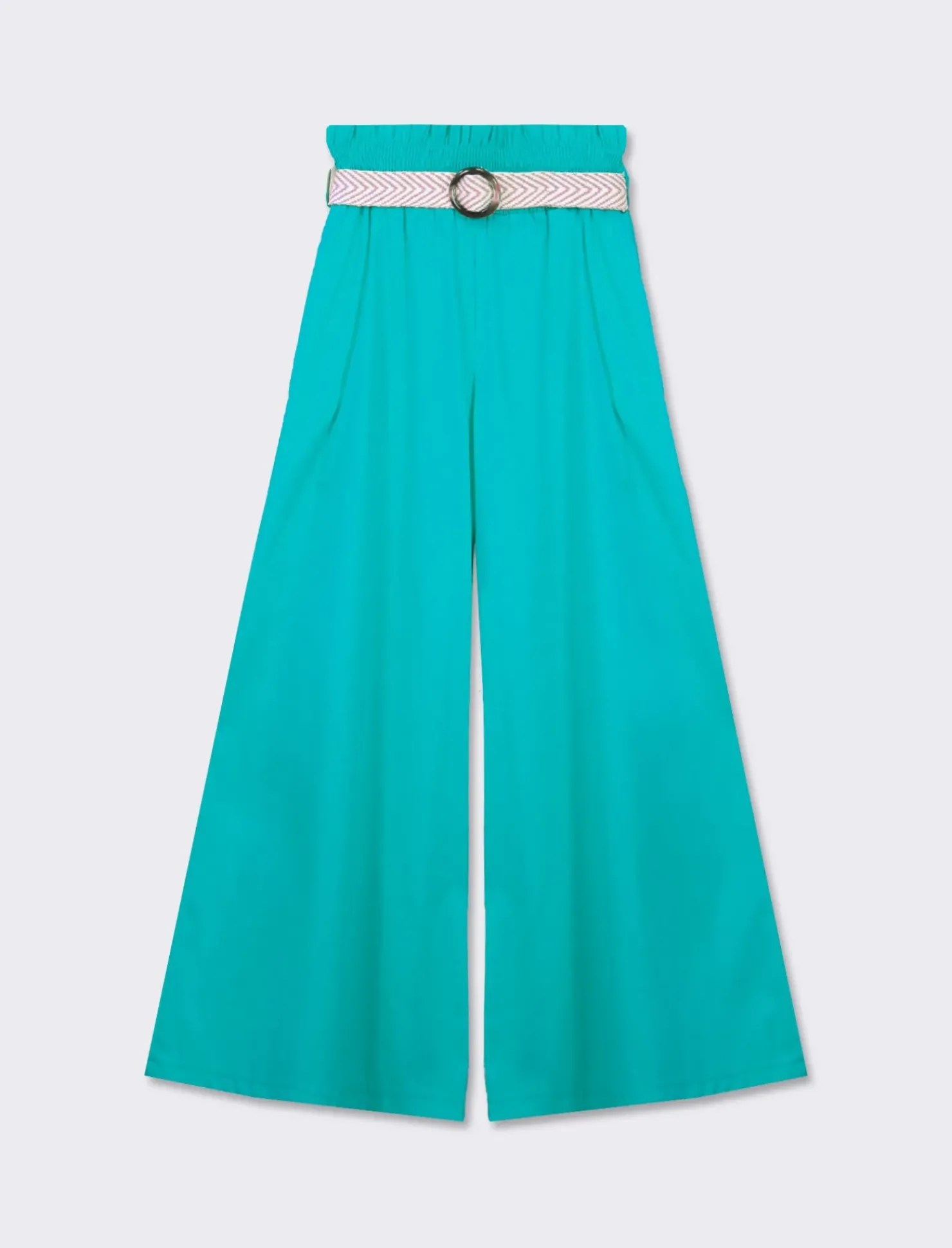 Il pantalone in cotone con cinura è l’aggiunta perfetta al guardaroba di ogni donna. , questo capo versatile offre comfort grazie all’elastico in vita e alla cinura regolabile. Con un design elegante e pratico, questo pantalone è ideale per creare outfit casual o più formali. Il prodotto è di colore Verde acqua