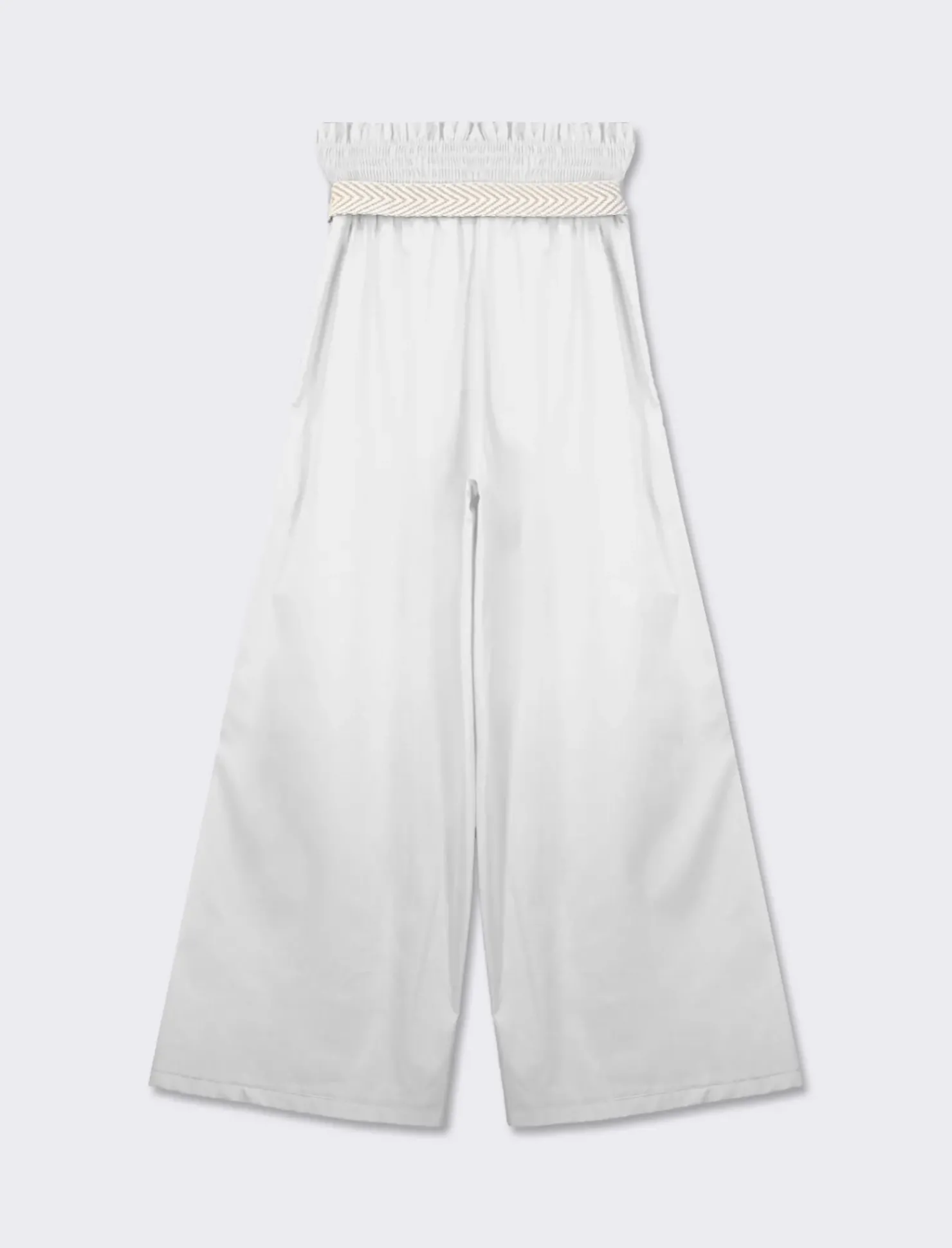 Piazza Italia Pantalone cotone con elastico in vita e cinura – Bianco Fashion