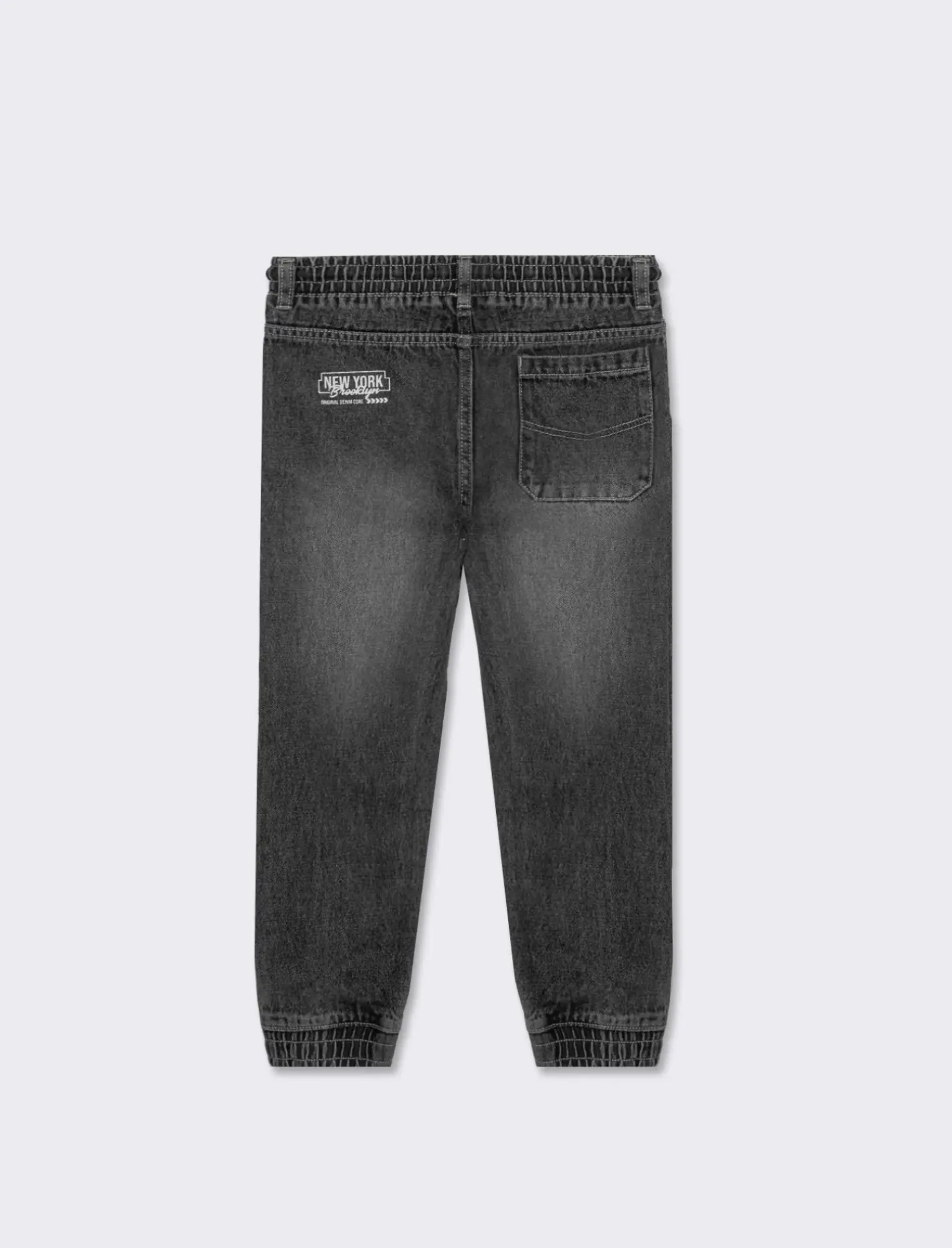 Piazza Italia Pantalone in denim modello jogger con lacci in vita e stampa sul dietro – Grigio New