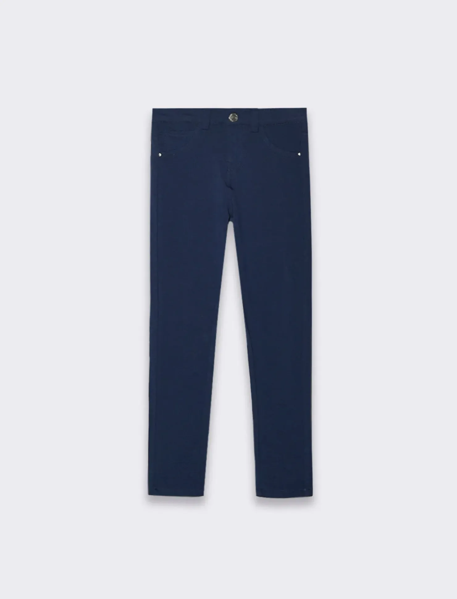 Pantalone cinque tasche elastico da bambina, perfetto per completare il suo daily style. Realizzato in french terry elastico, garantisce comfort e libertà di movimento. Il taglio slim fit valorizza la figura, mentre la vita interna regolabile assicura una vestibilità perfetta. Il prodotto è di colore Blu