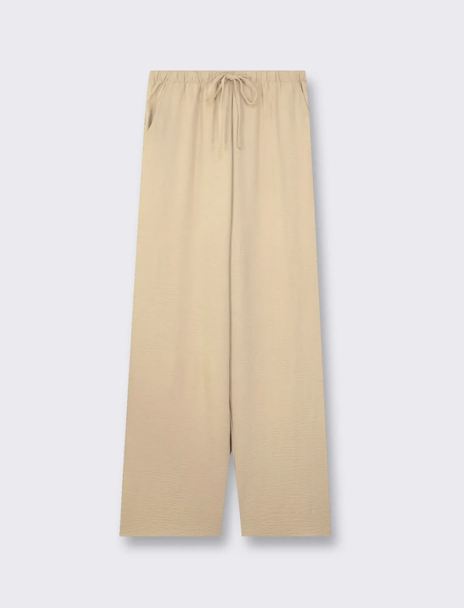 Pantalone straigt con coulisse per donna: realizzato in tessuto fluido e dotato di elastico in vita, questo capo assicura una vestibilità comoda e alla moda. Perfetto per un look casual ma curato, ideale per ogni occasione. Un must-have nel guardaroba di ogni donna moderna e attenta allo stile. Il prodotto è di colore Beige corda