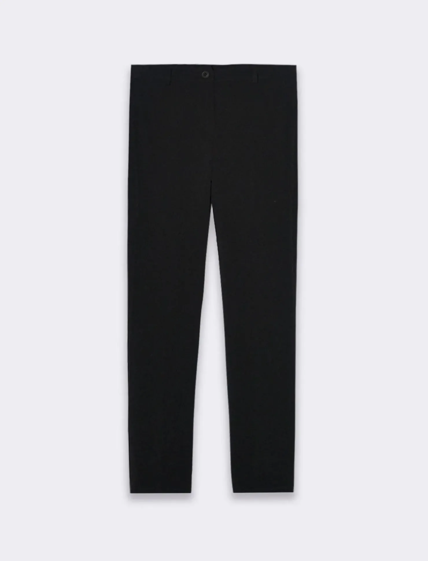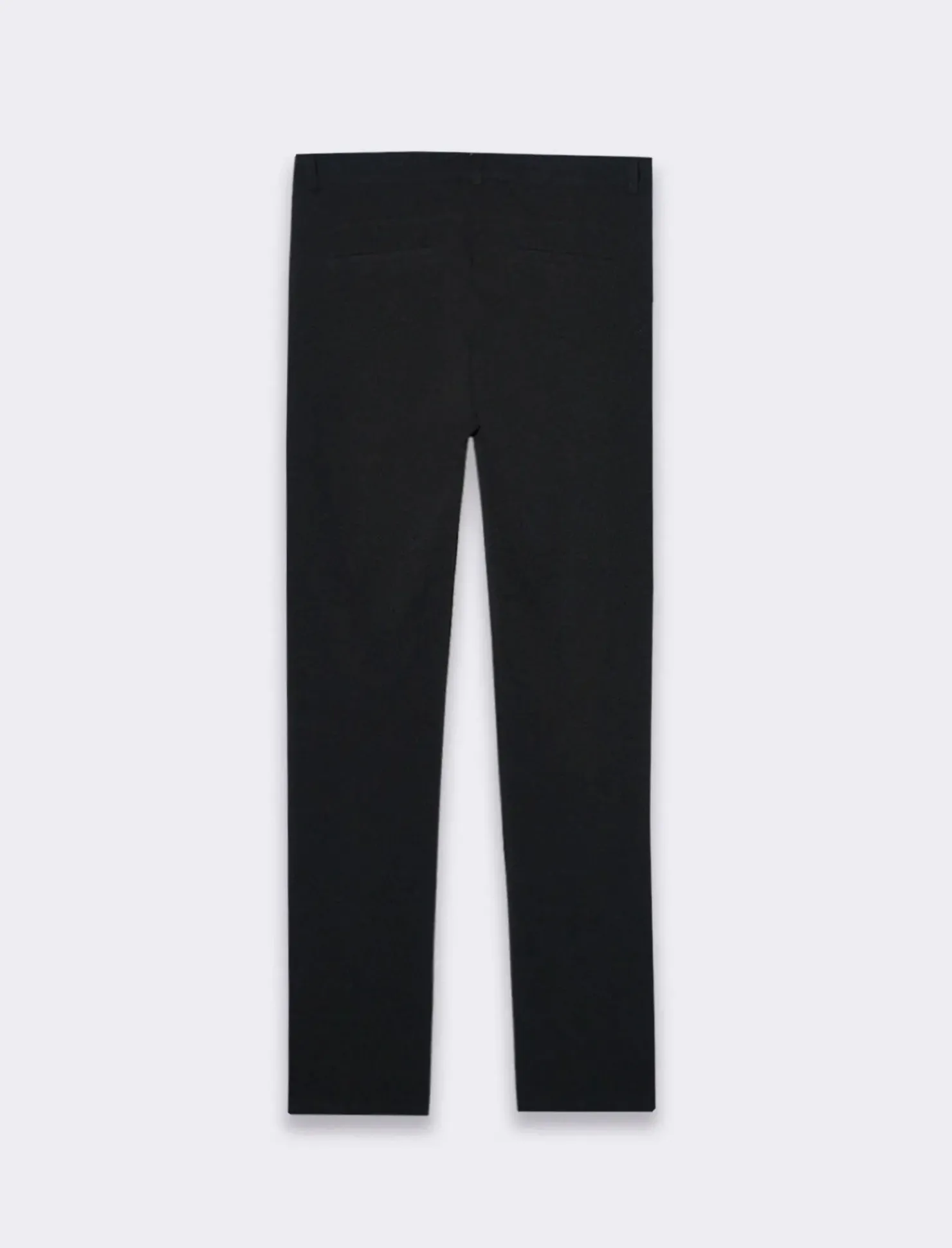Pantaloni eleganti e moderni, realizzati in un tessuto elastico che garantisce comfort e libertà di movimento. La chiusura con zip e bottone sulla parte anteriore offre un aspetto pulito e raffinato, assicurando una vestibilità sicura e pratica. La vestibilità slim segue le linee del corpo, creando un look snello e contemporaneo senza essere troppo aderente. Il prodotto è di colore Nero