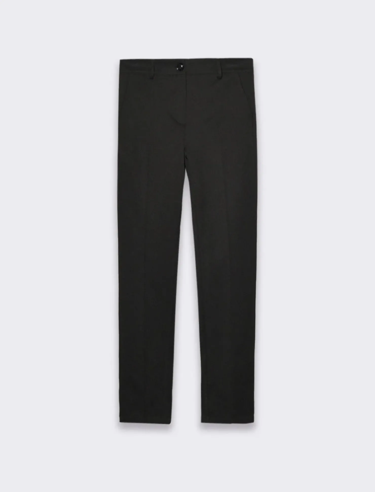 Pantaloni a vita alta sono progettati per valorizzare la figura, con un taglio slim fit che segue le linee del corpo senza essere troppo aderente.La vita alta aggiunge un tocco di raffinatezza e aiuta a slanciare la silhouette, rendendo questi pantaloni ideali per occasioni formali o per un look da ufficio impeccabile. La chiusura è con zip nascosta e un bottone discreto, che mantiene il design pulito e sofisticato. Le tasche laterali oblique sono pratiche e aggiungono un elemento funzionale senza compromettere l’eleganza del capo. Il taglio slim fit si adatta perfettamente alle gambe, terminando con un orlo che può essere facilmente abbinato a scarpe eleganti o tacchi alti. Questi pantaloni sono versatili e possono essere abbinati a una camicia elegante per un look professionale, oppure a un top più casual per un outfit da sera chic. Il prodotto è di colore Nero