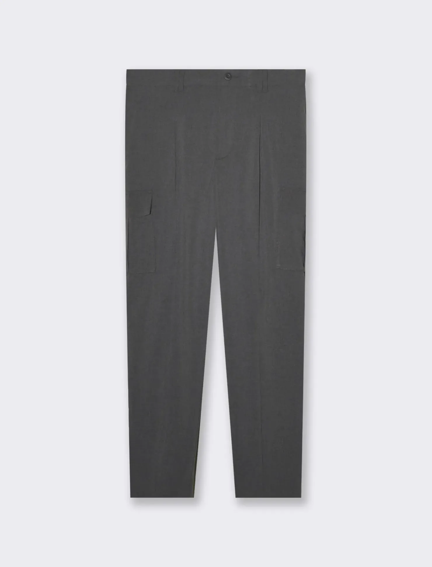 I pantaloni cargo con vita semi elasticizzata rappresentano un perfetto equilibrio tra comfort e stile. Realizzati in un tessuto resistente, questi pantaloni chino presentano pinces sul davanti che conferiscono una vestibilità elegante. Le pratiche tasche laterali con patta offrono spazio per gli oggetti essenziali, mentre la tasca a filetto posteriore aggiunge un tocco di raffinatezza. La chiusura con bottone e cerniera garantisce una vestibilità sicura, rendendoli ideali per ogni occasione. Il prodotto è di colore Antracite melange
