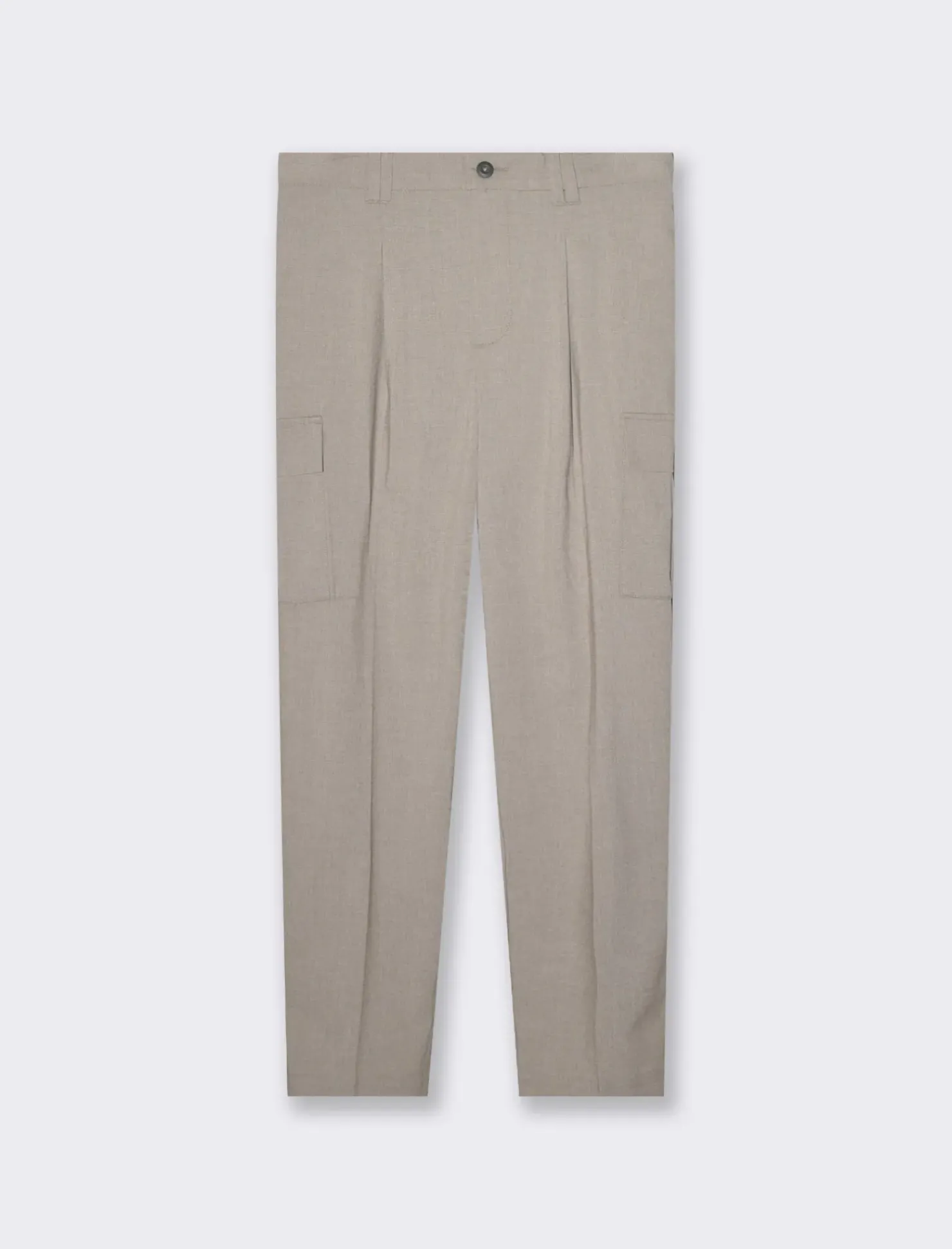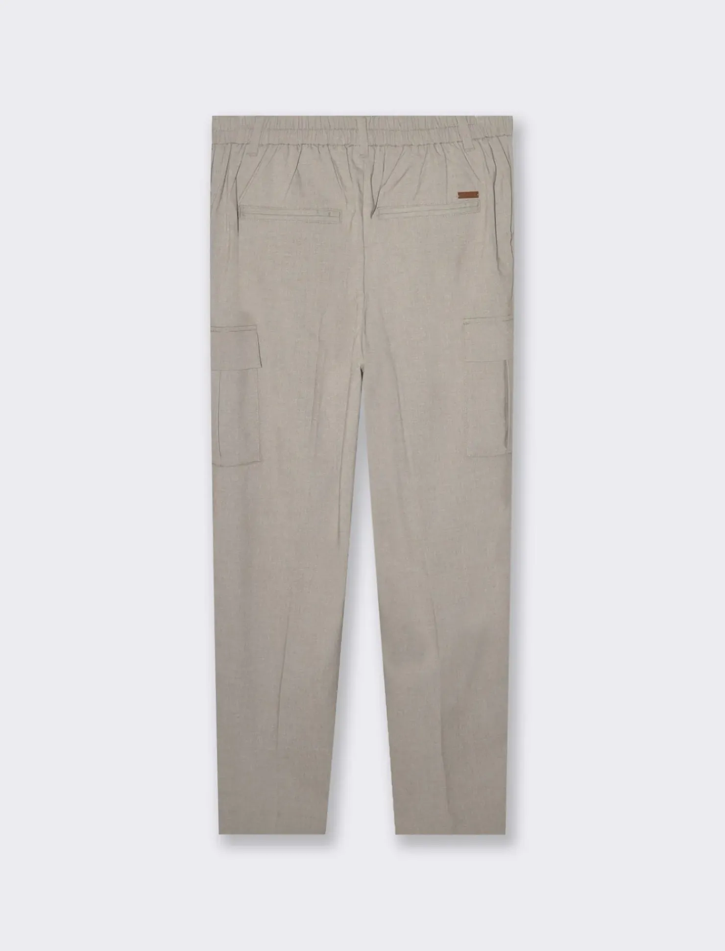 I pantaloni cargo con vita semi elasticizzata rappresentano un perfetto equilibrio tra comfort e stile. Realizzati in un tessuto resistente, questi pantaloni chino presentano pinces sul davanti che conferiscono una vestibilità elegante. Le pratiche tasche laterali con patta offrono spazio per gli oggetti essenziali, mentre la tasca a filetto posteriore aggiunge un tocco di raffinatezza. La chiusura con bottone e cerniera garantisce una vestibilità sicura, rendendoli ideali per ogni occasione. Il prodotto è di colore Beige