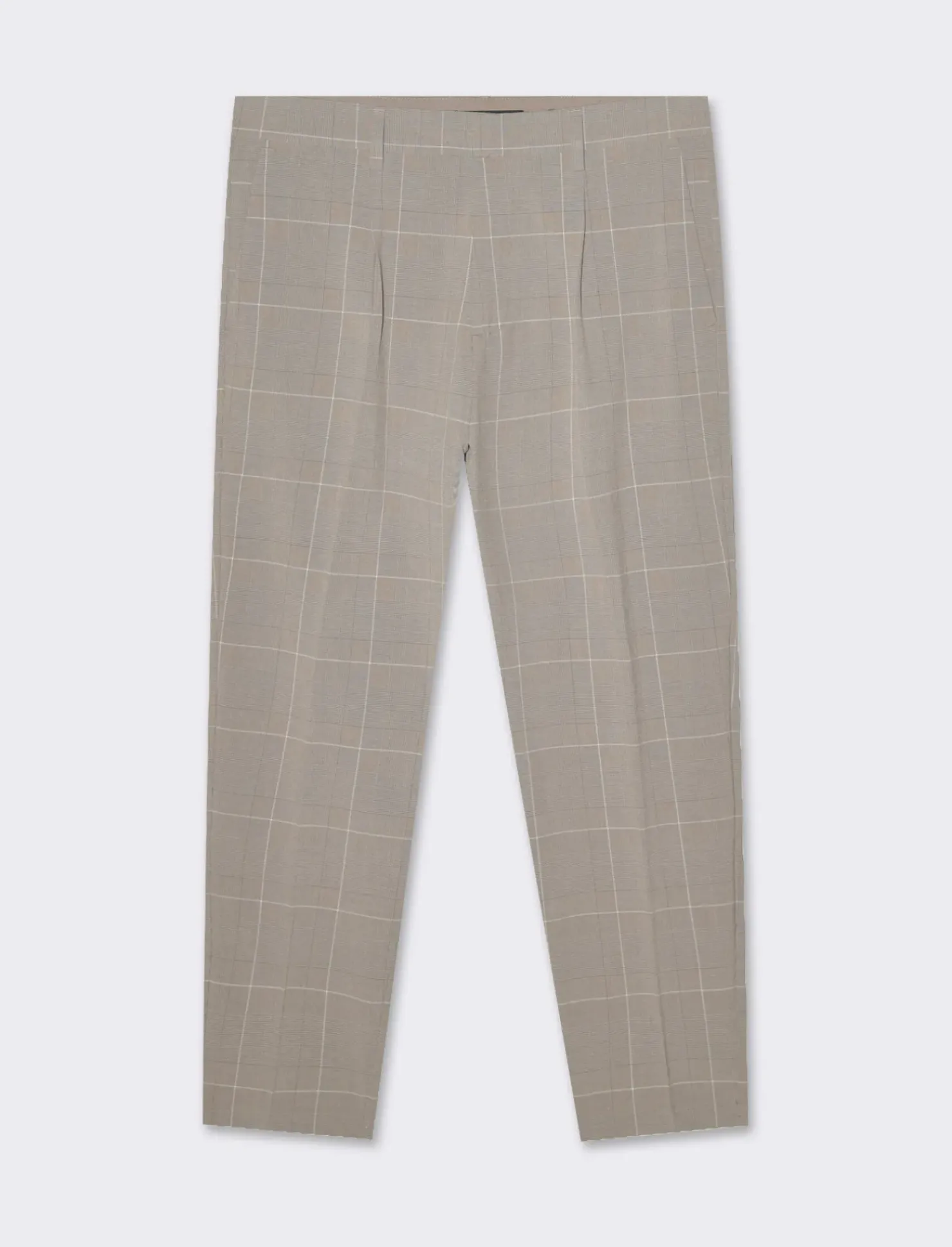 Pantaloni Chino microfantasia a quadri, perfetti per un look casual ma curato. Il taglio regular fit assicura comodità e stile, mentre le tasche anteriori e posteriori aggiungono praticità. Le pinces sul davanti conferiscono un tocco di eleganza in più. Ideali per un uomo che ama essere alla moda senza rinunciare al comfort. Il prodotto è di colore Beige