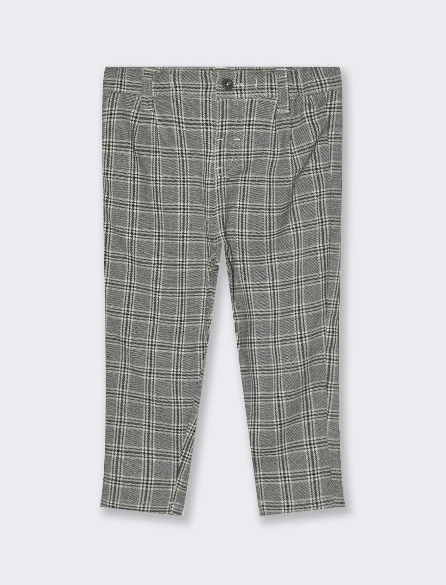 Pantaloni da neonata a quadri, modello elegante, con bottone frontale. Ideale per abbinamenti romantici e chic. Il prodotto è di colore Fantasia