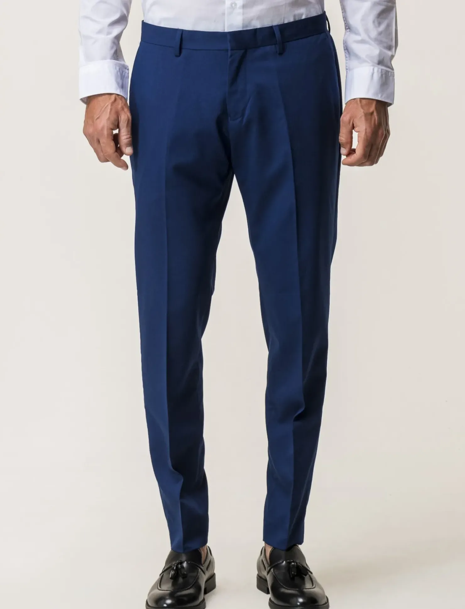 Pantaloni da completo formal fit eleganti e raffinati, i pantaloni formal fit sono l’ideale per un look formale e curato. Con tasche anteriori e dettaglio di tasche a filetto posteriori, garantiscono praticità e stile. La chiusura anteriore con cerniera e bottone completa il design di questi pantaloni, perfetti per un uomo che ama distinguersi con classe. Il prodotto è di colore Bluette