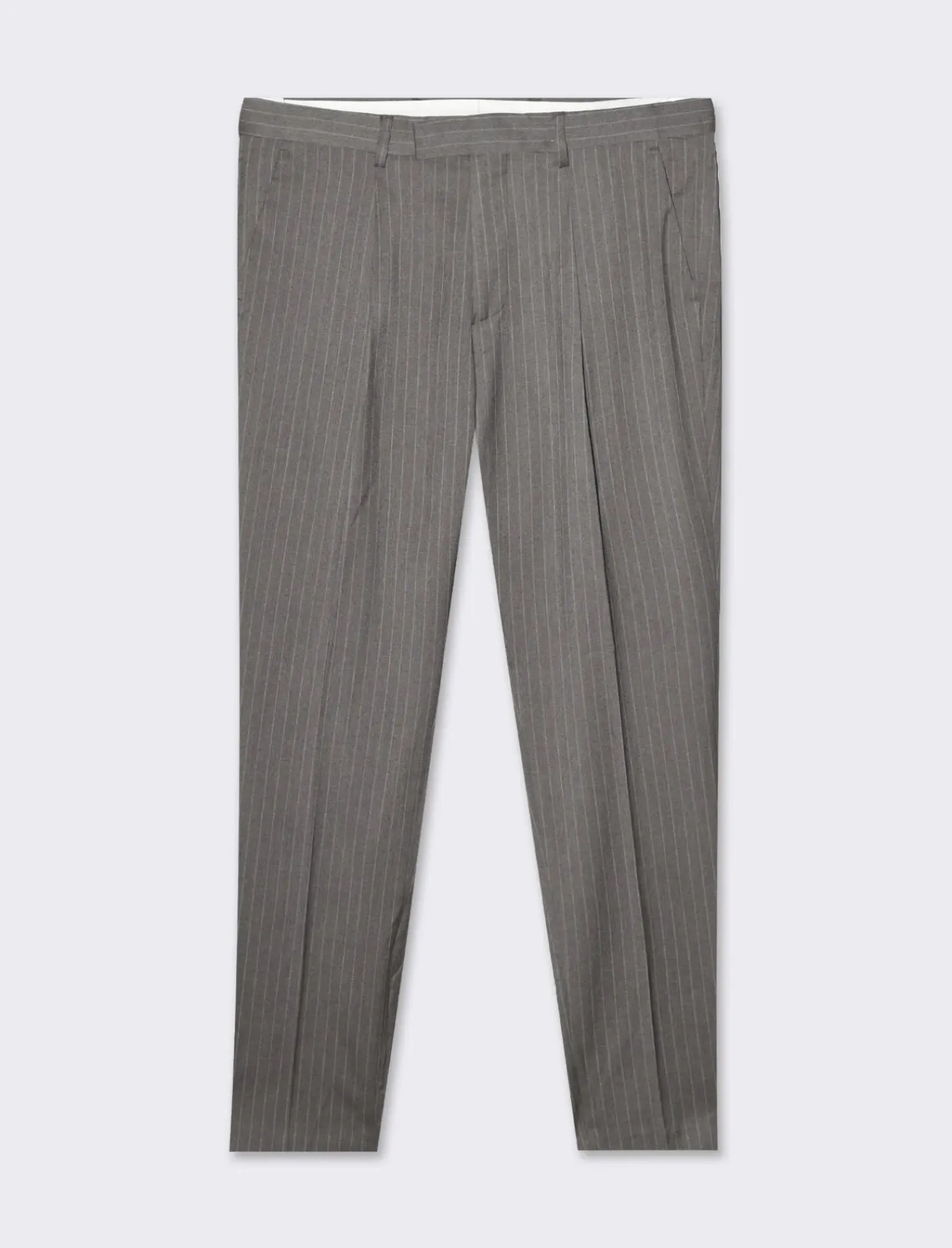 Pantaloni da completo formal fit sono ideali per un look elegante e professionale. Realizzati in tessuto fantasia gessata, con tasche anteriori e dettaglio ditasche a filetto posteriori. La chiusura anteriore con cerniera e bottone garantisce praticità e stile. Perfetti per un uomo che ama distinguersi con classe in ogni occasione. Il prodotto è di colore Grigio tortora