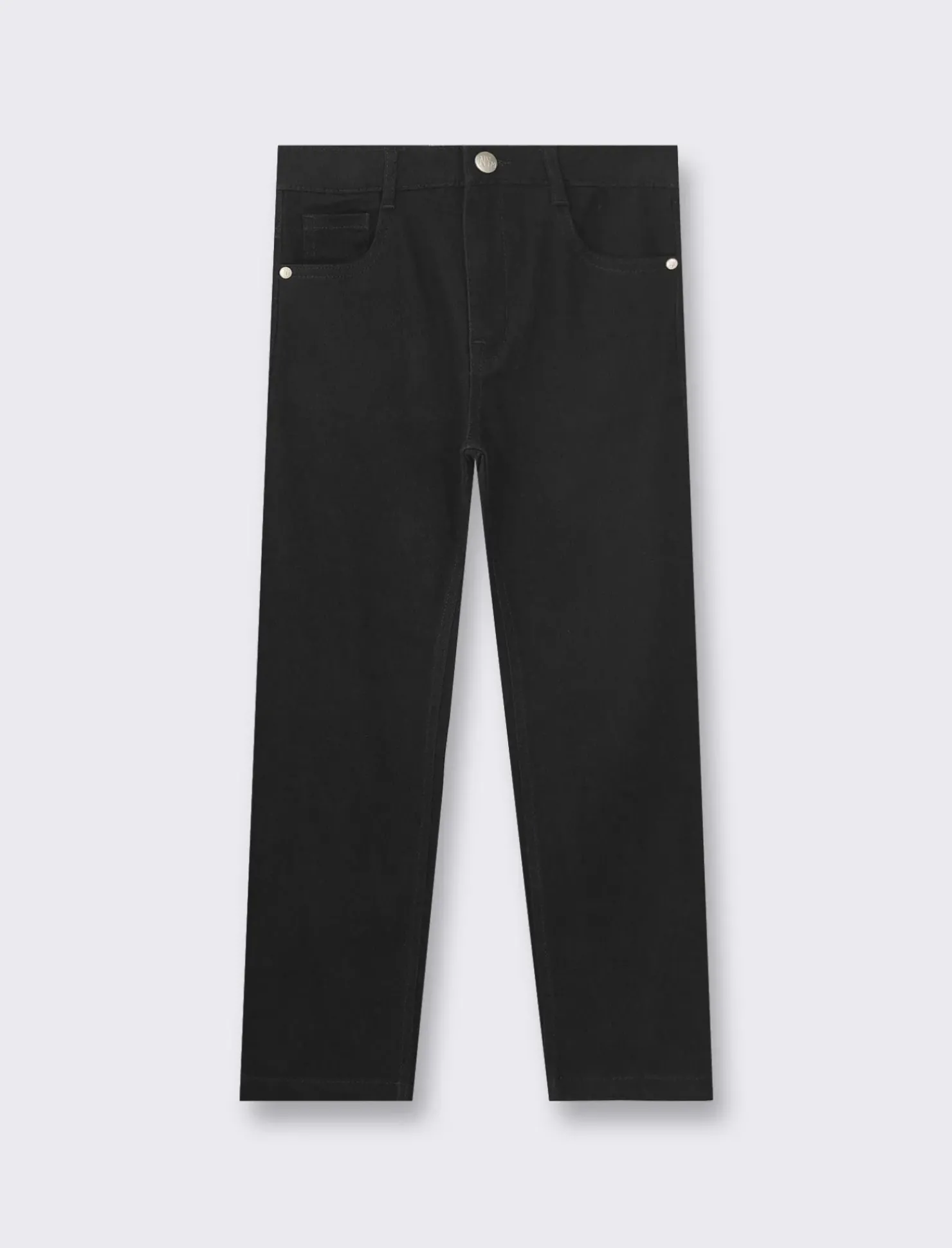 Pantaloni in twill per bambini realizzati in morbido cotone elastico, dotati di 5 tasche e patch posteriore. Disponibili in 4 varianti di colore, sono perfetti per un look casual adatto a qualsiasi occasione. Comfort e stile garantiti per i più piccoli! Il prodotto è di colore Nero