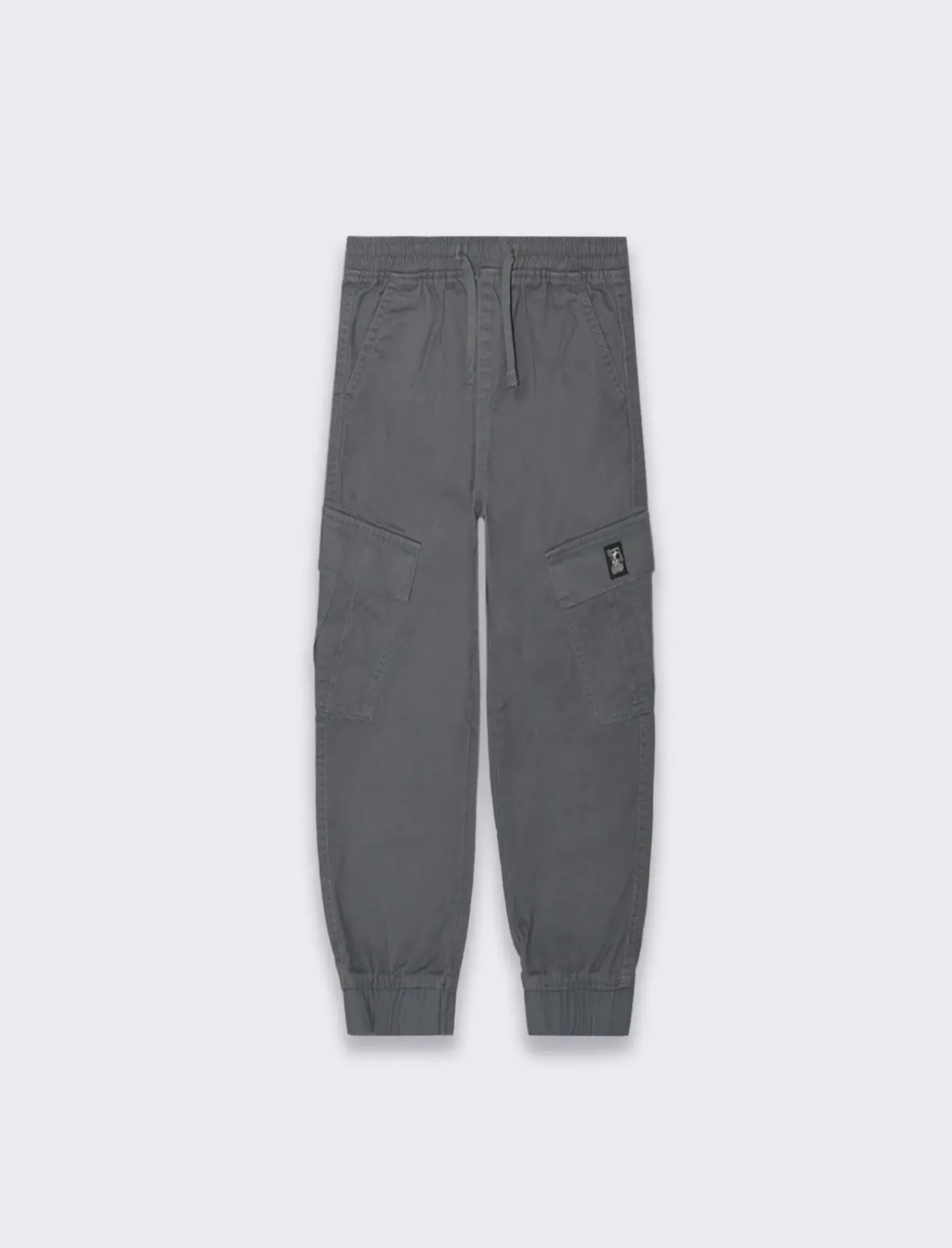 Pantaloni in twill con tasconi per bambini, realizzati in morbido cotone. La linea jogger garantisce massima comodità, mentre la culisse e l’elastico al fondo della gamba assicurano una vestibilità perfetta. Ideali per un look casual e alla moda, perfetti per ogni occasione. Il prodotto è di colore Grigio cenere