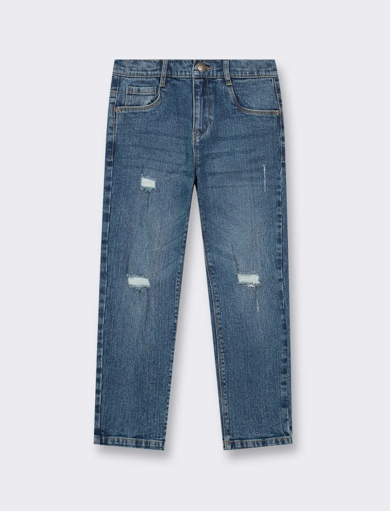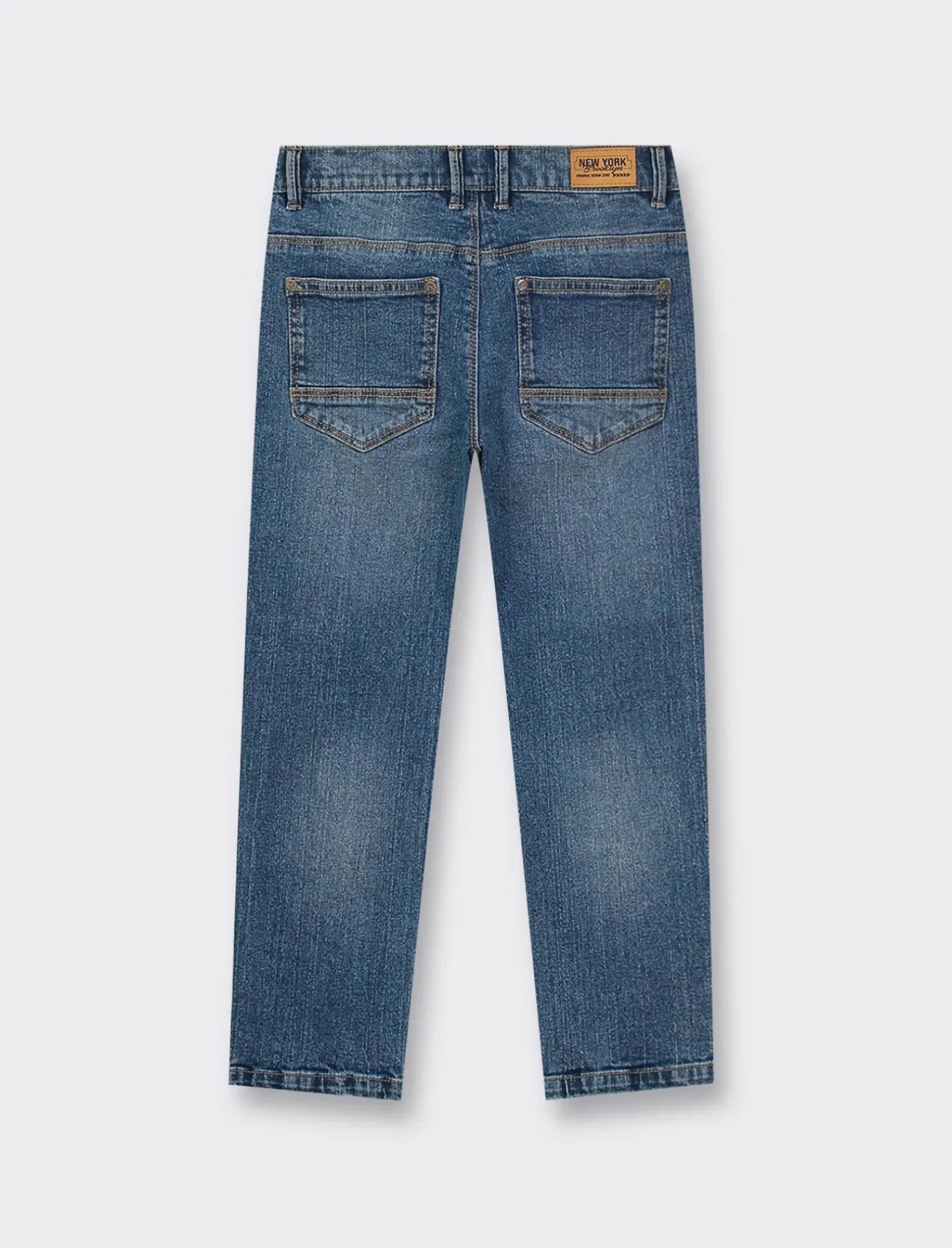 Pantaloni in denim 5 tasche per bambini, dal design regular fit e con elastico regolabile in vita. Con le rotture frontali, questi pantaloni donano uno stile sportivo e alla moda ai più piccoli. Ideali per un look casual e comodo, perfetti per ogni occasione. Il prodotto è di colore Denim