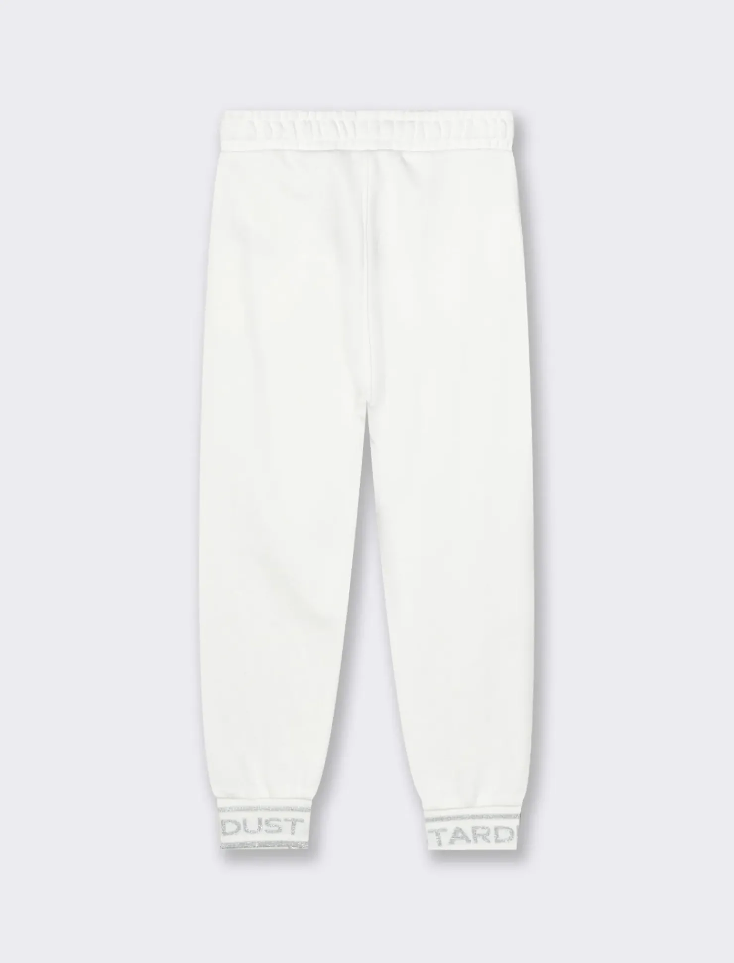 Pantaloni in felpa con elastico in vita per bambina, ideali per un look comodo e alla moda. La costina elastica al fondo con motivo jaquard argento aggiunge un tocco di stile unico. Perfetti per le giornate di gioco e di svago, garantendo libertà di movimento e comfort. Il prodotto è di colore Bianco sporco