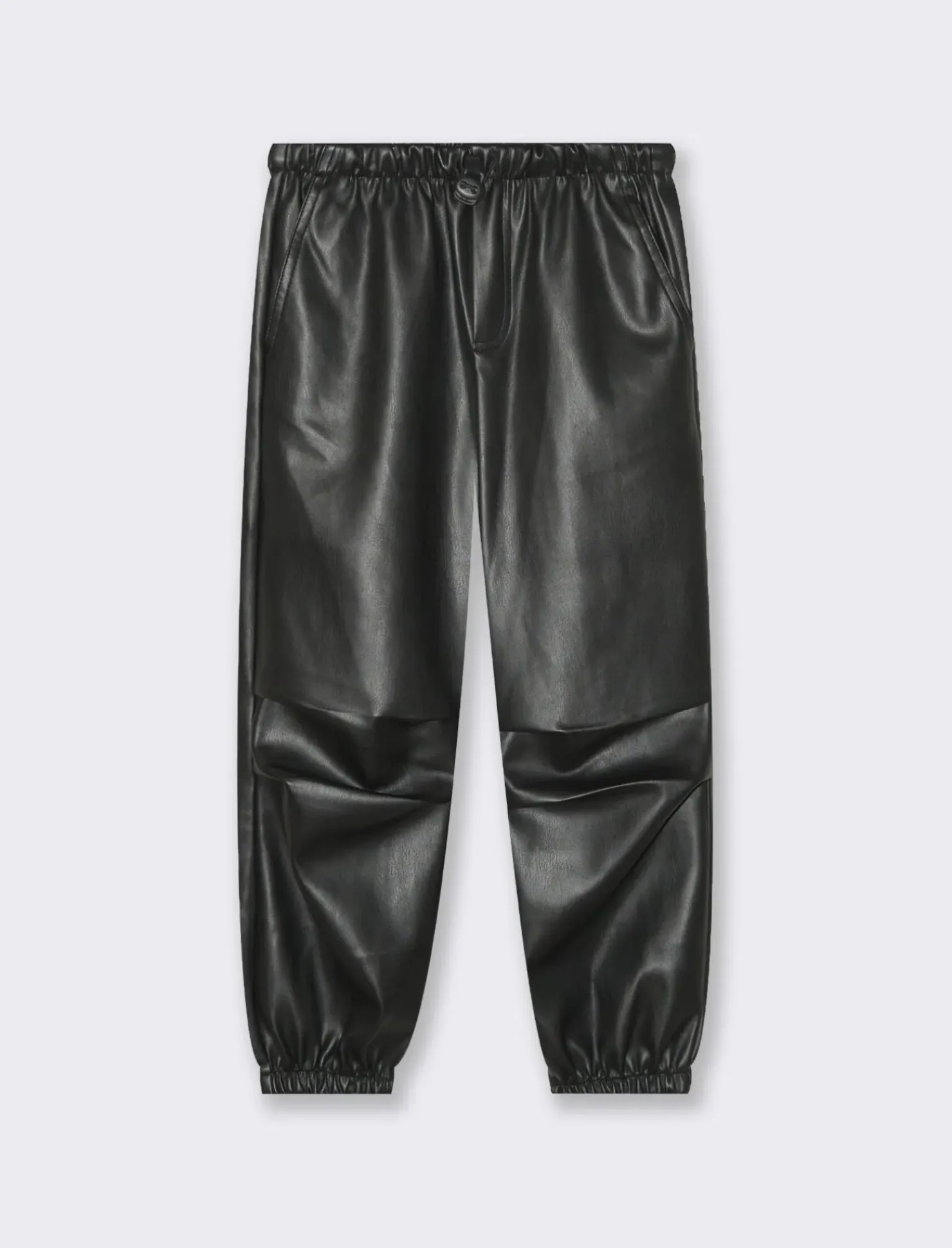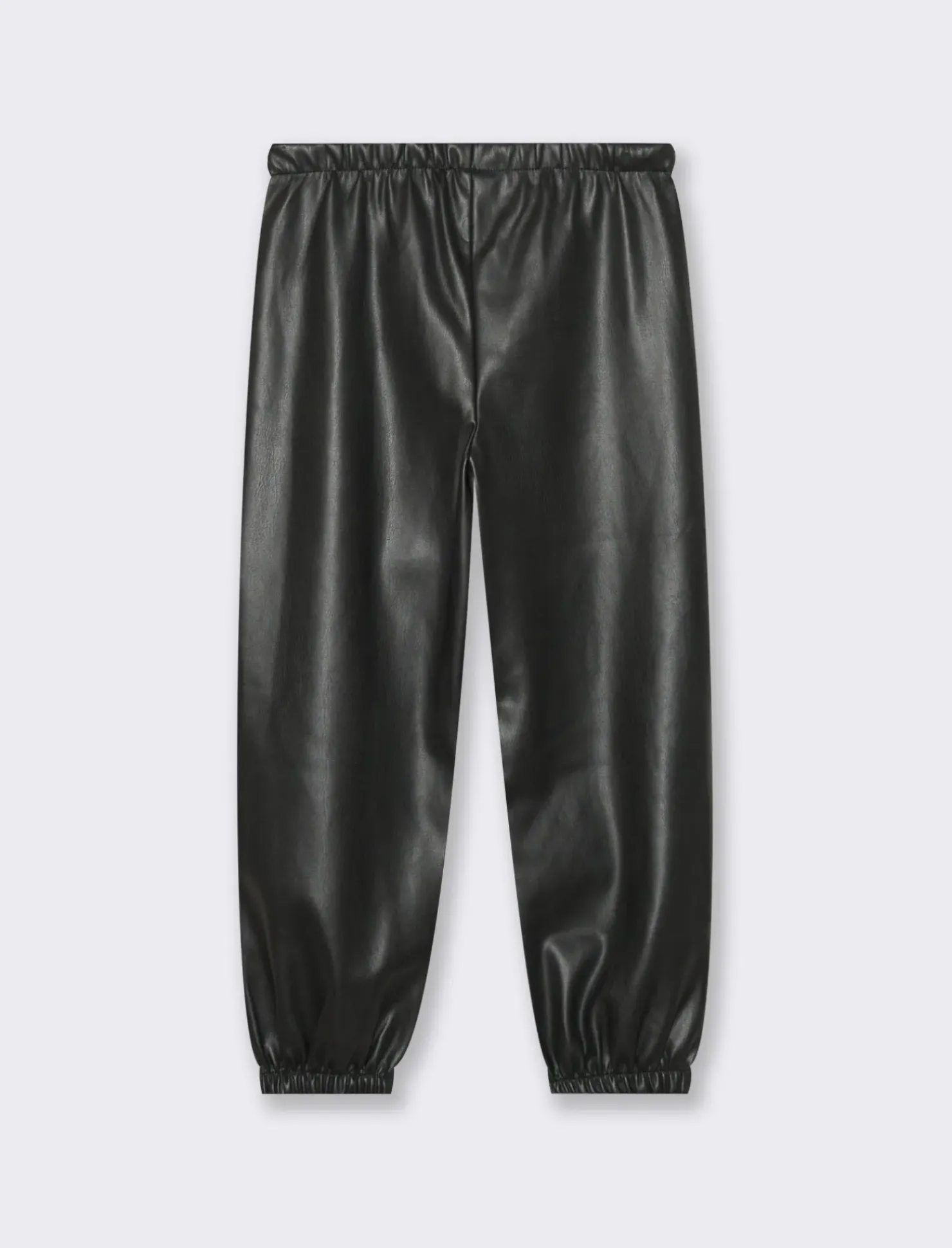 Pantaloni in finta pelle perfetti per le piccole fashioniste. Con coulisse in vita ed elastico al fondo, assicurano comfort e praticità. Il dettaglio delle piegoline aggiunge un tocco di stile unico. Ideali per creare outfit trendy e comodi per le giornate di gioco e divertimento. Il prodotto è di colore Nero