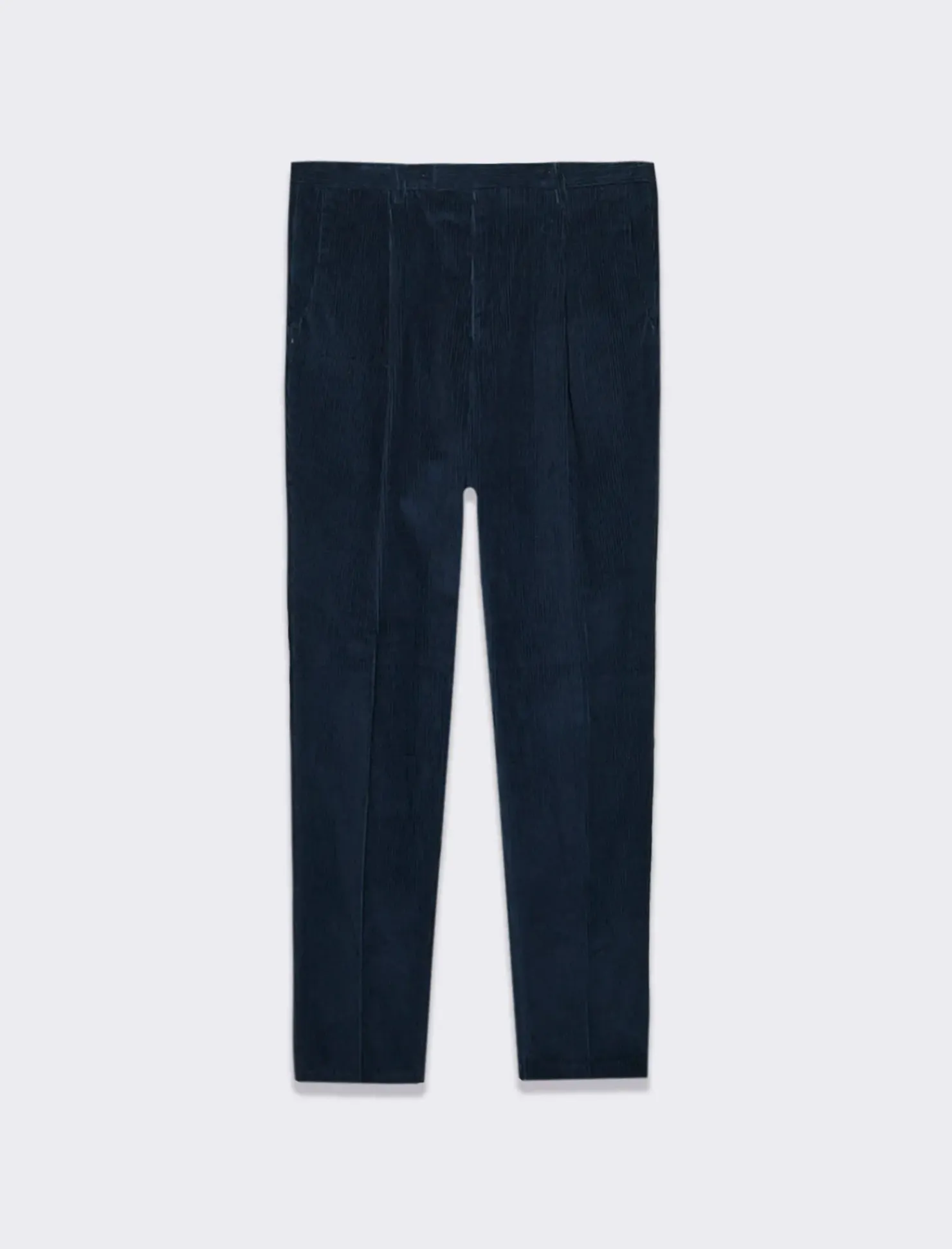 Piazza Italia Pantaloni in velluto formal fit con tasche a filetto posteriori – Blu Online