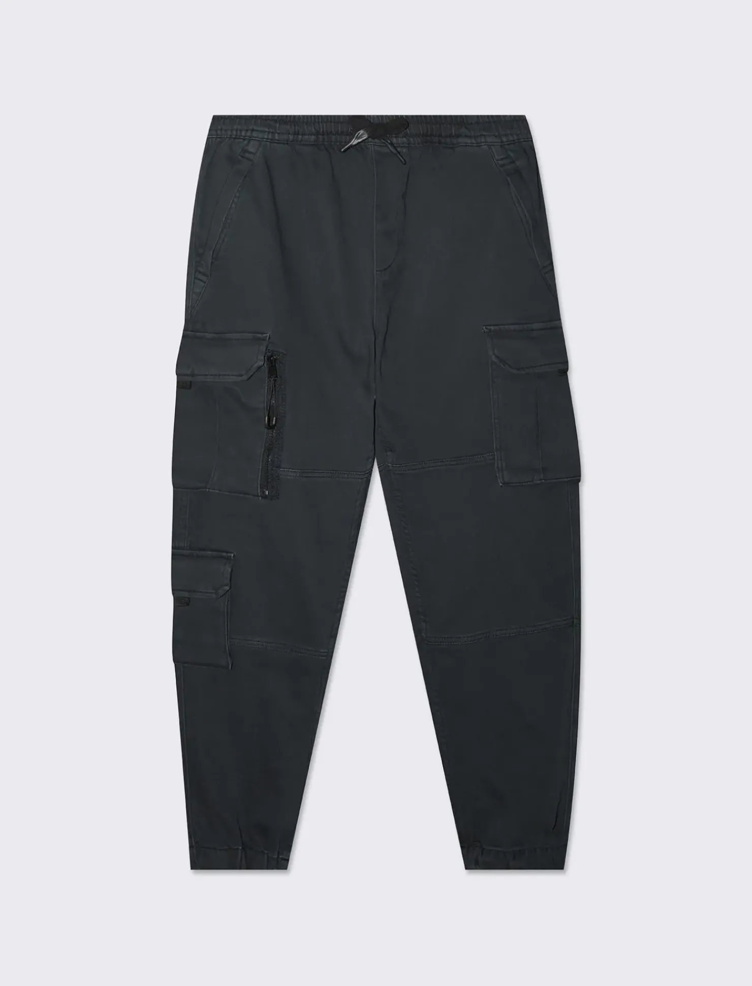 Pantaloni jogger cargo fit comodi e alla moda, i pantaloni jogger cargo fit sono realizzati in tessuto Garment Dyed di alta qualità. La vita elasticizzata regolabile con laccio assicura una vestibilità perfetta, mentre le tasche anteriori e il dettaglio di tasca a filetto posteriore aggiungono un tocco di stile. Le tasche applicate con patta completano il look, rendendo questi pantaloni un must-have per ogni uomo alla moda. Il prodotto è di colore Nero