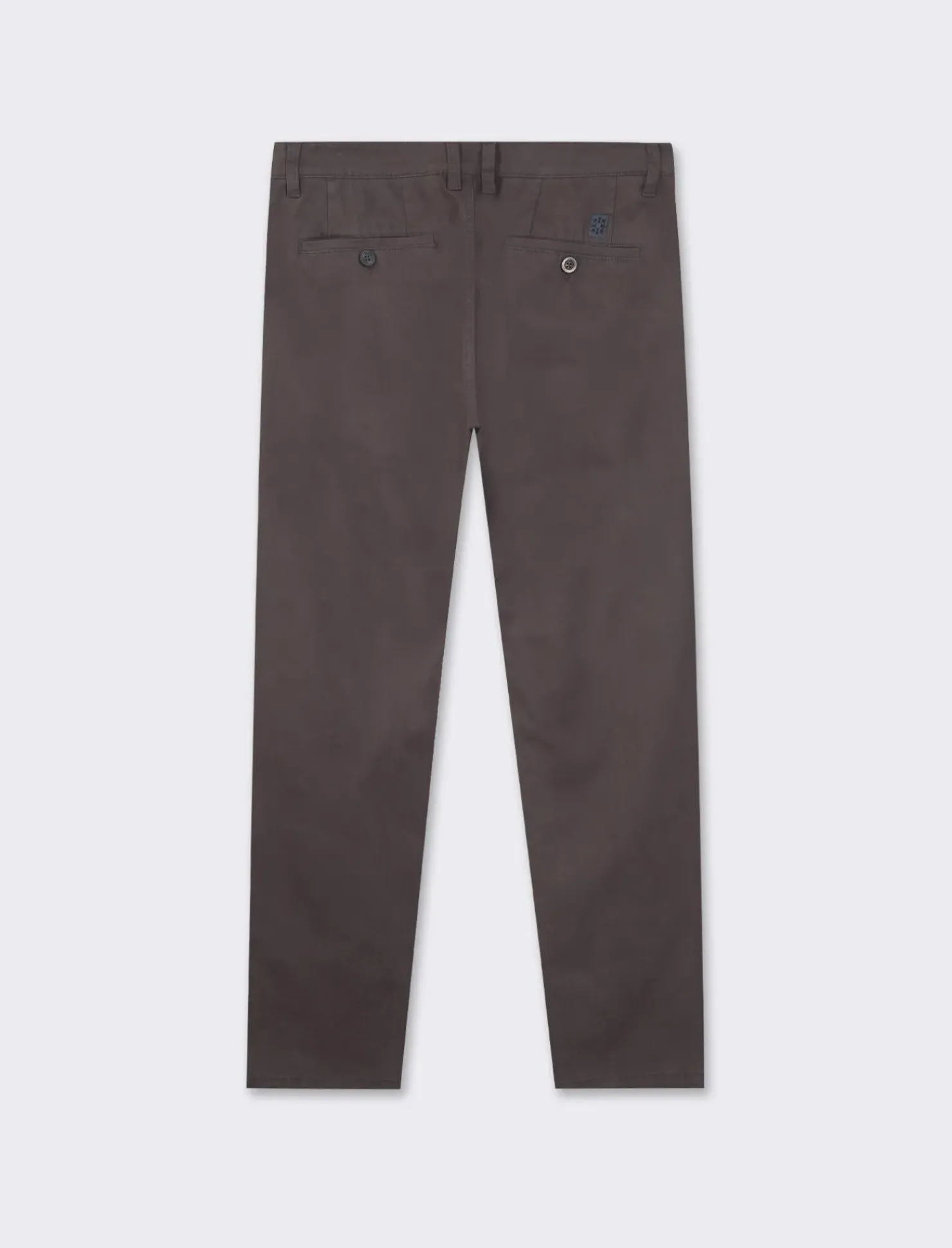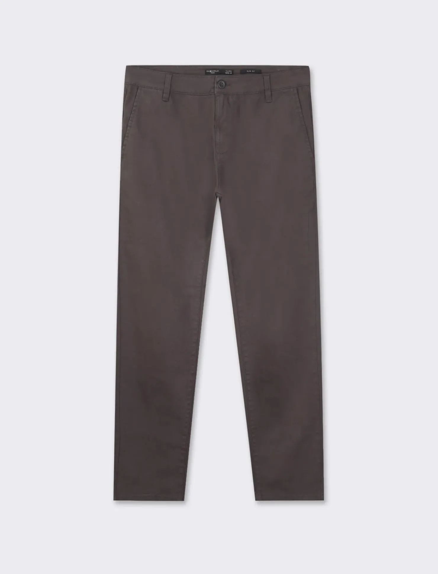 Pantaloni chino slim fit, ideali per un look casual e raffinato. Realizzati in tessuto twill di cotone elasticizzato, garantiscono comfort e vestibilità perfetta. Il modello slim fit valorizza la figura maschile, mentre l’effetto leggermente slavato conferisce un tocco di modernità. Dotati di chiusura anteriore con cerniera e bottone, e tasche posteriori a filo. Il prodotto è di colore Grigio antracite