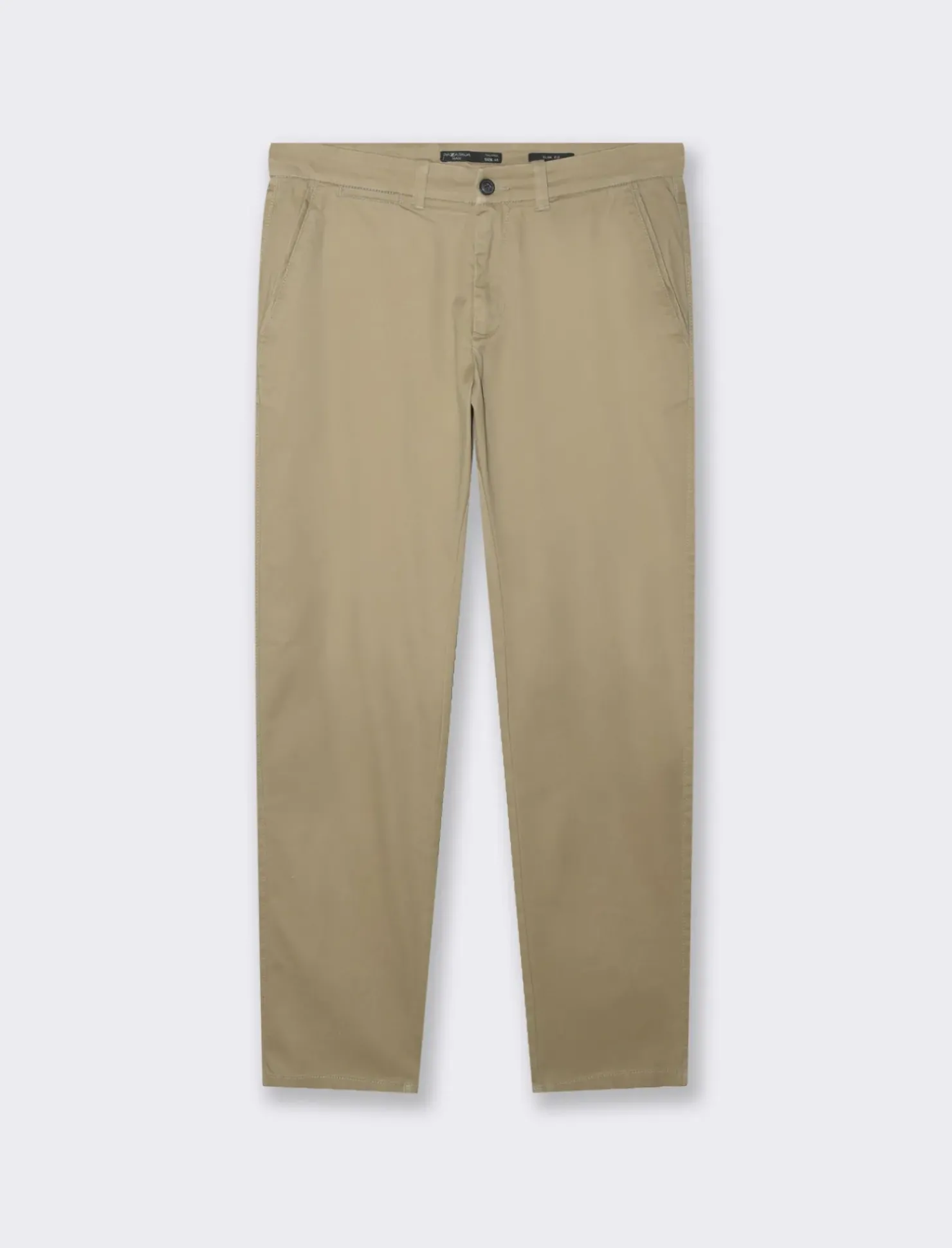 Pantaloni chino slim fit per un look elegante e alla moda. Realizzati in tessuto diagonale di cotone elasticizzato, garantiscono comfort e vestibilità perfetta. La chiusura anteriore con cerniera e bottone assicura praticità, mentre le tasche posteriori a filo aggiungono un tocco di stile. Ideali per un outfit casual chic, perfetti per ogni occasione. Il prodotto è di colore Grigio tortora
