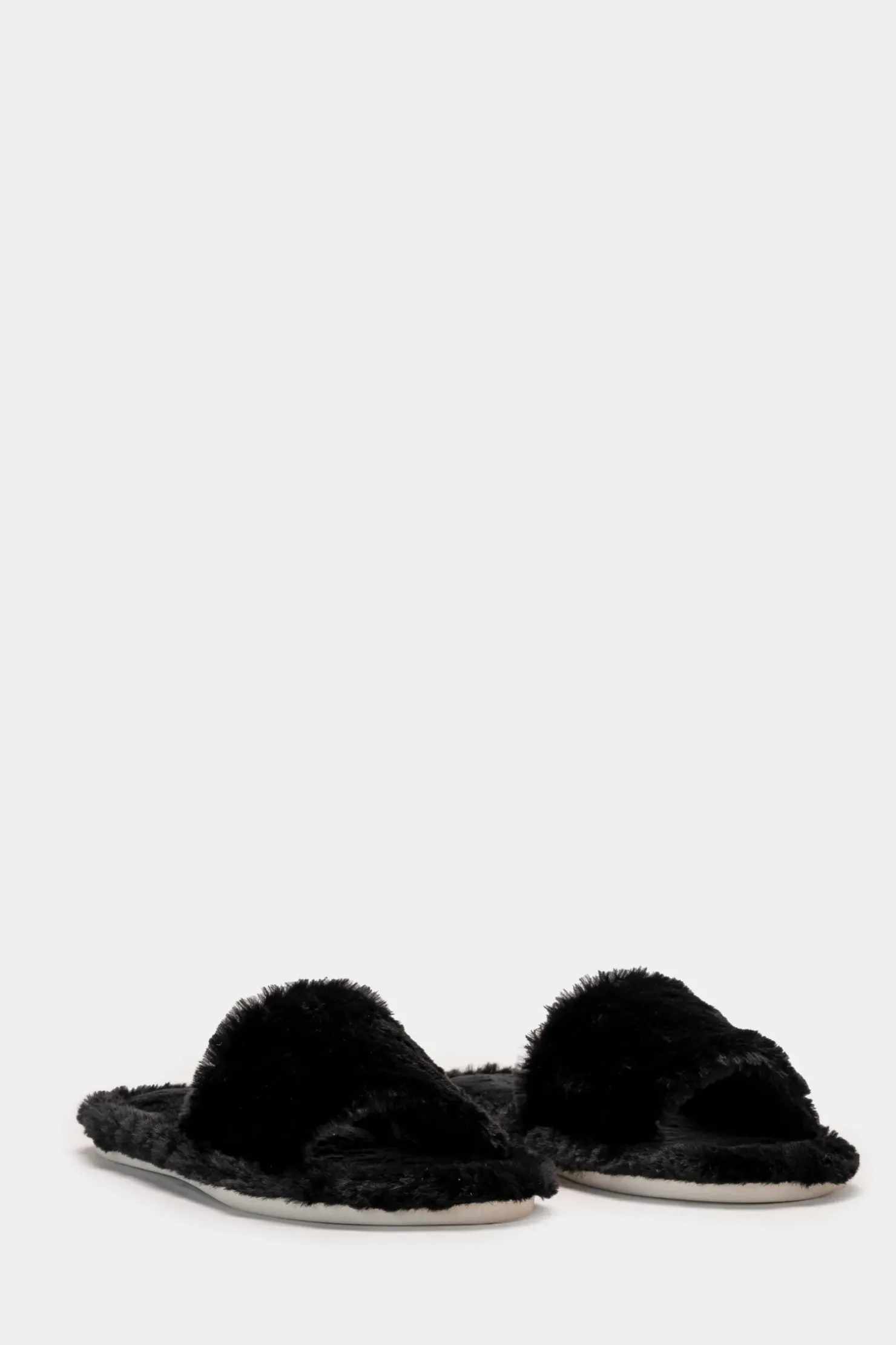Piazza Italia Pantofola in tessuto furry con fasce larghe – Nero Best