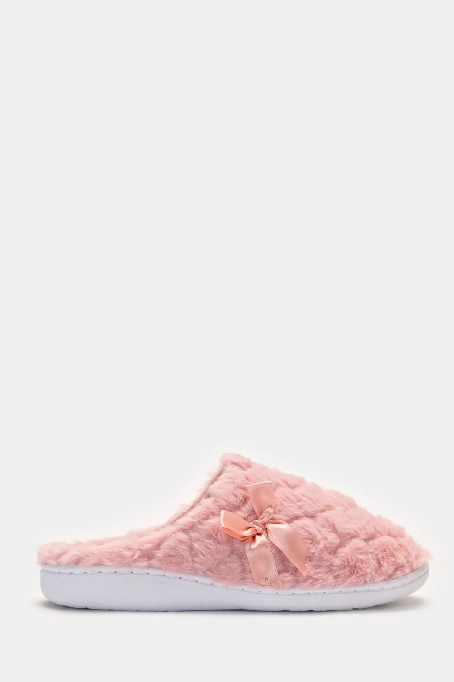 Piazza Italia Pantofola in tessuto furry con fiocco e fondo alto – Rosa Store