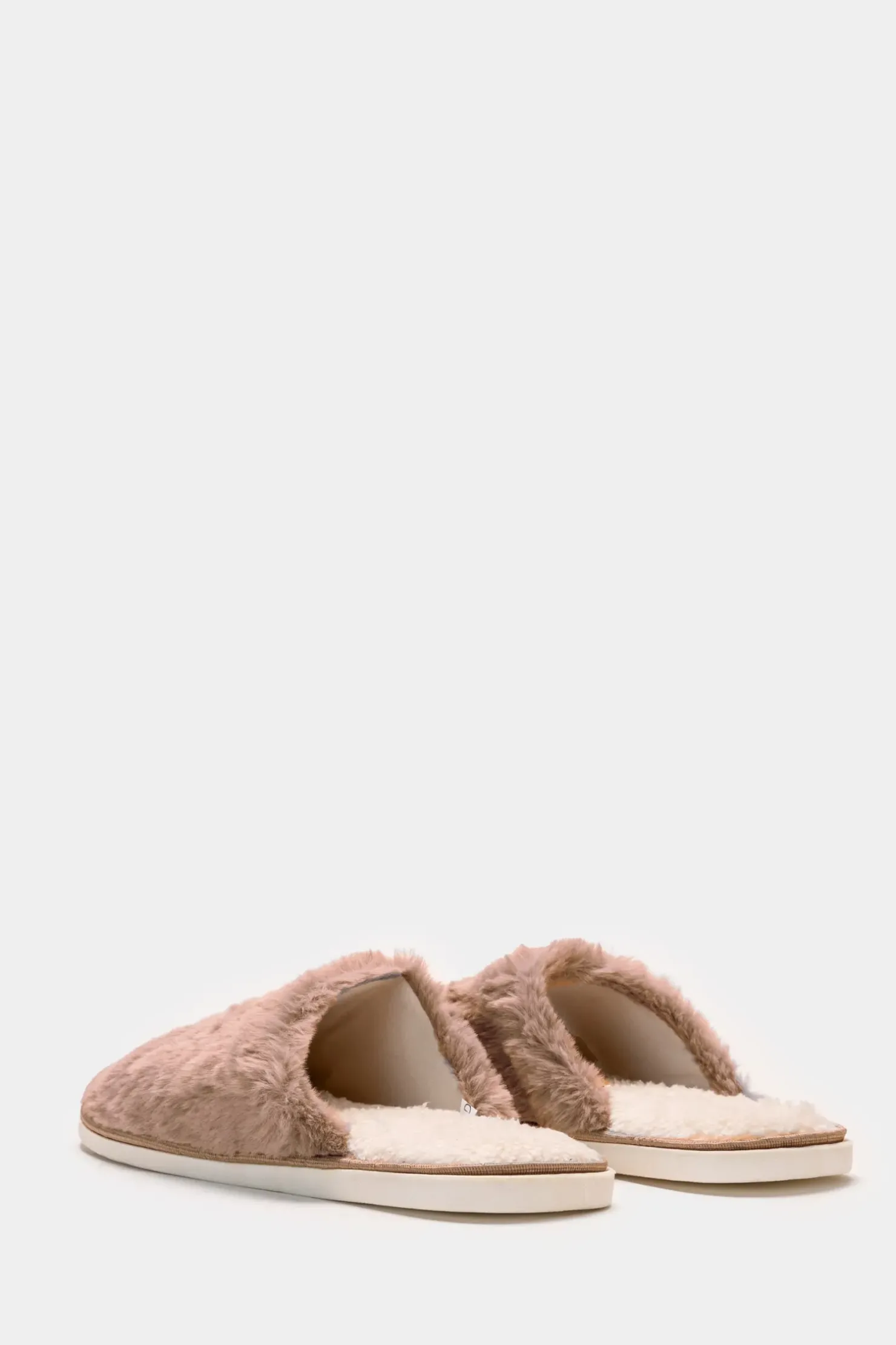 Piazza Italia Pantofola in tessuto furry con fondo rialzato – Beige Sale
