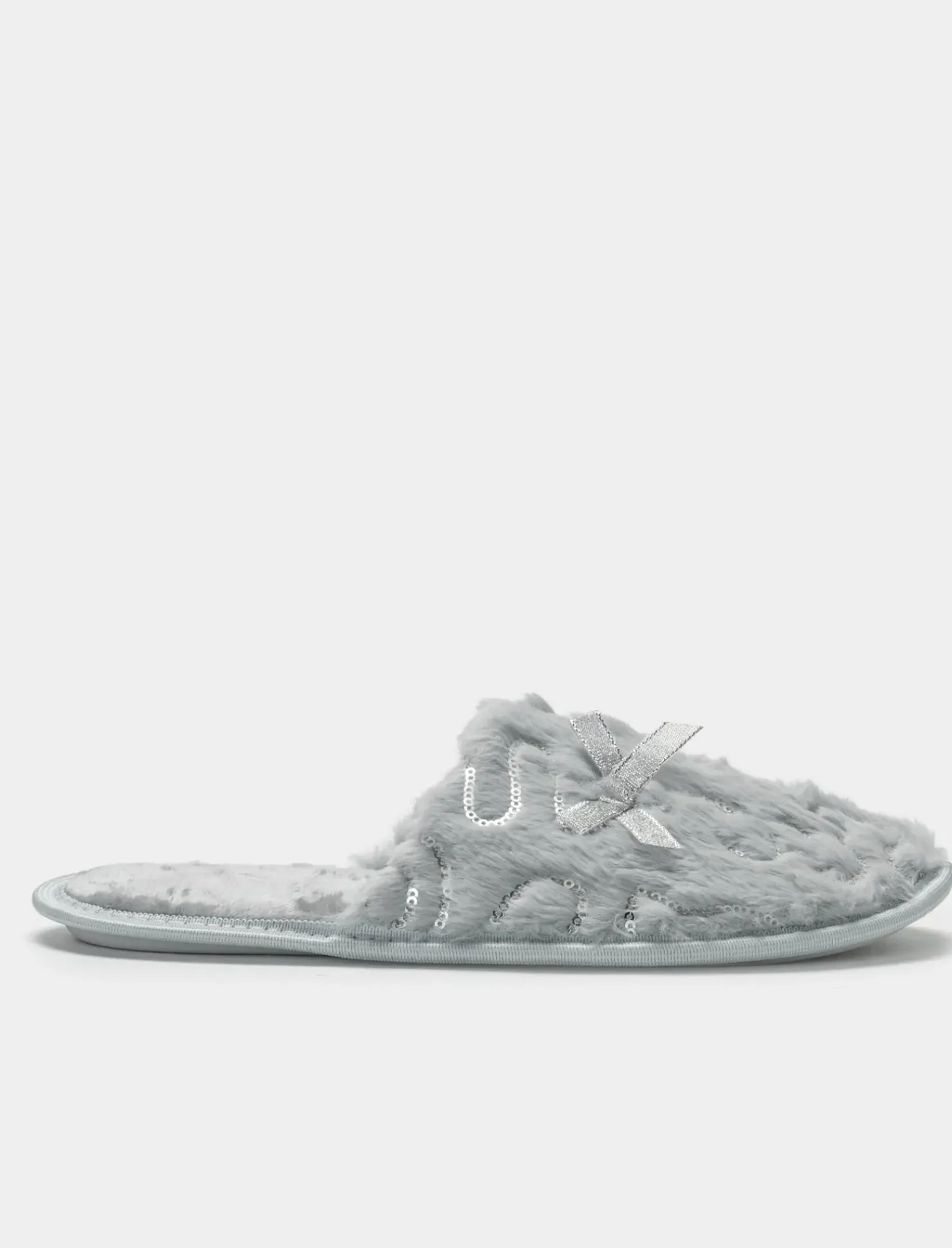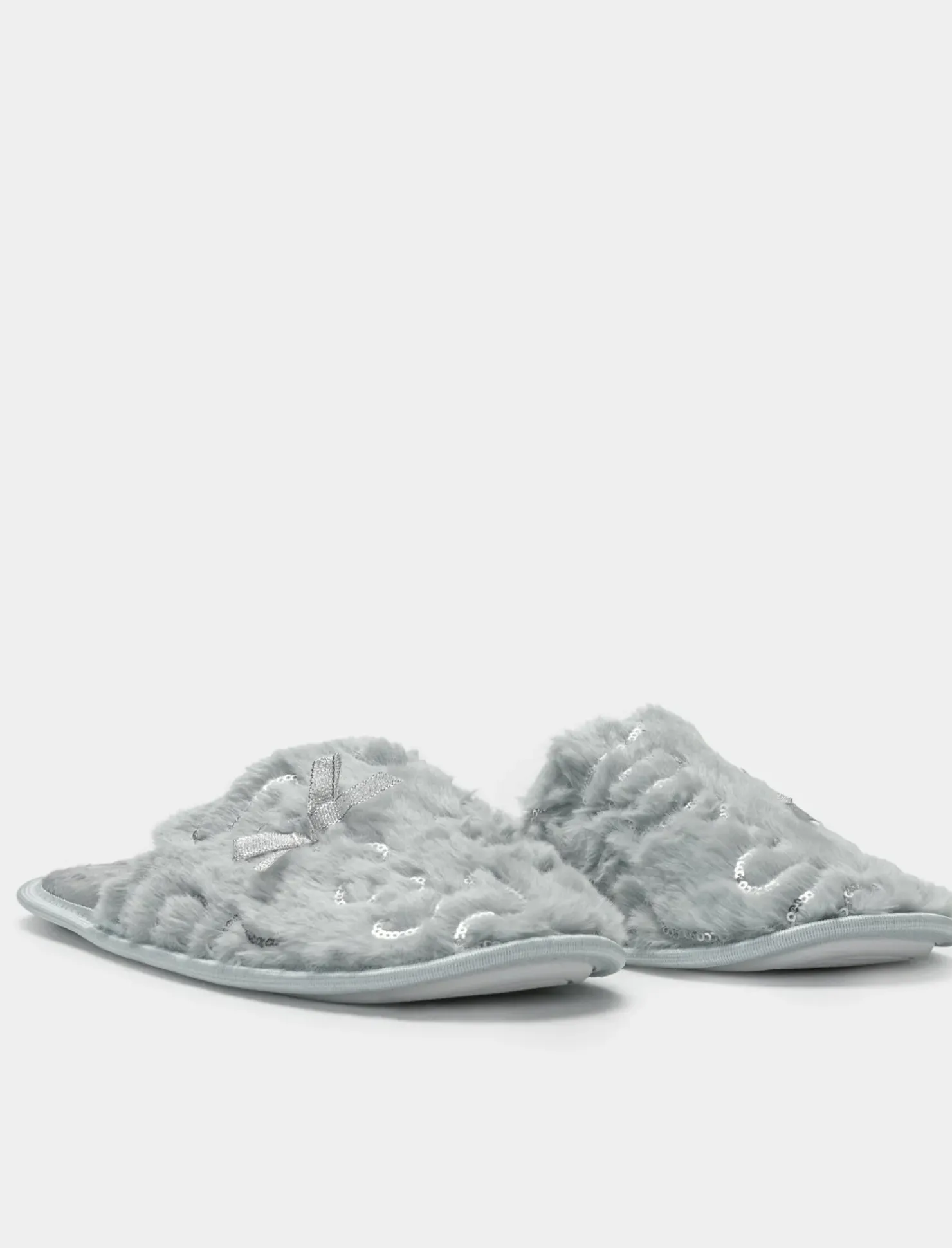 Piazza Italia Pantofola in tessuto furry con paillettes – Grigio Fashion
