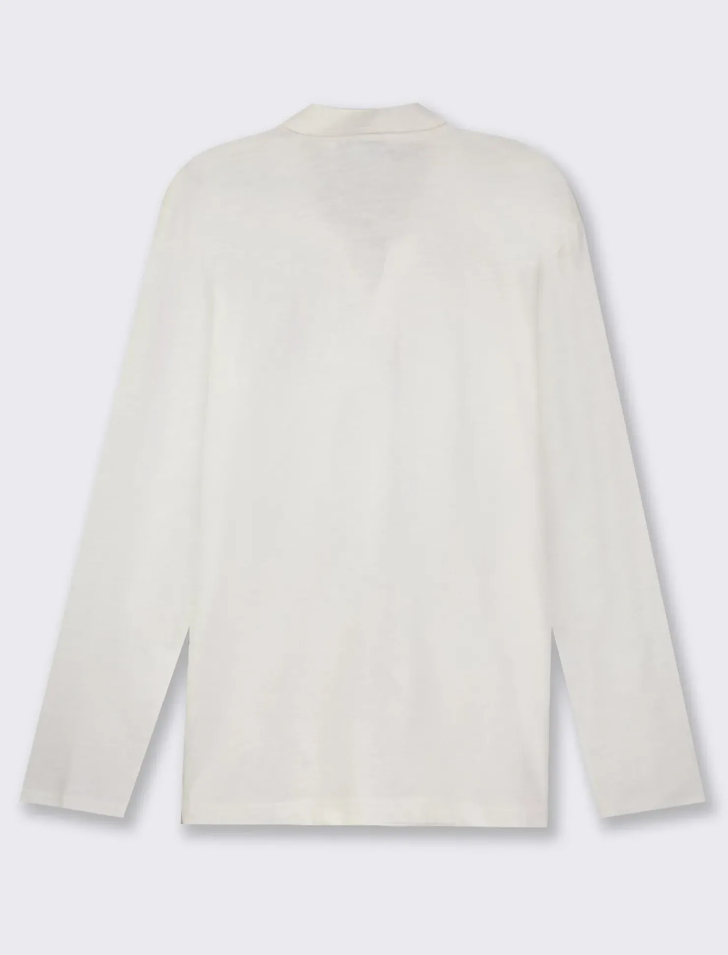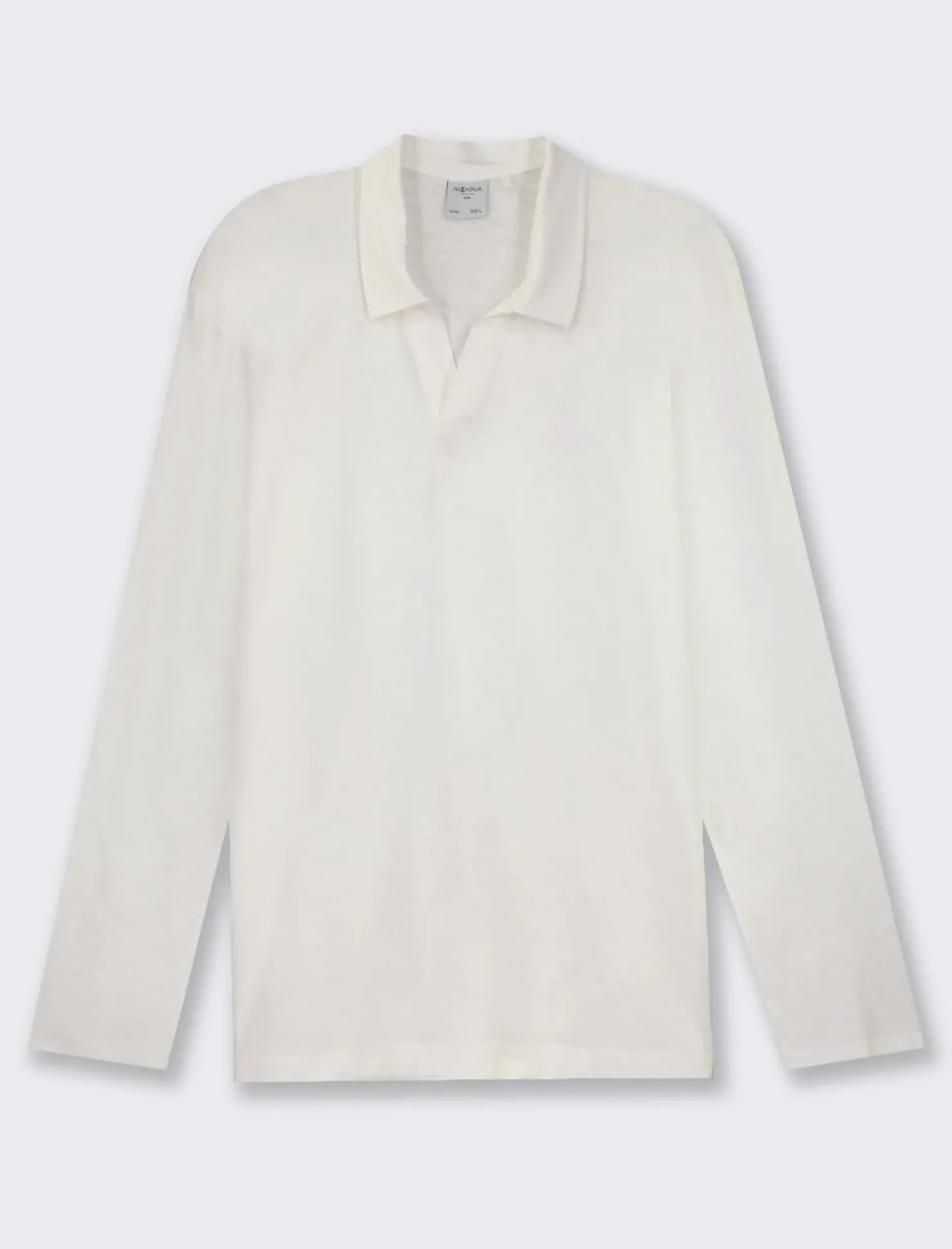 Piazza Italia Polo derby con colletto classico a rever in puro cotone slub a maniche lunghe – Bianco Store