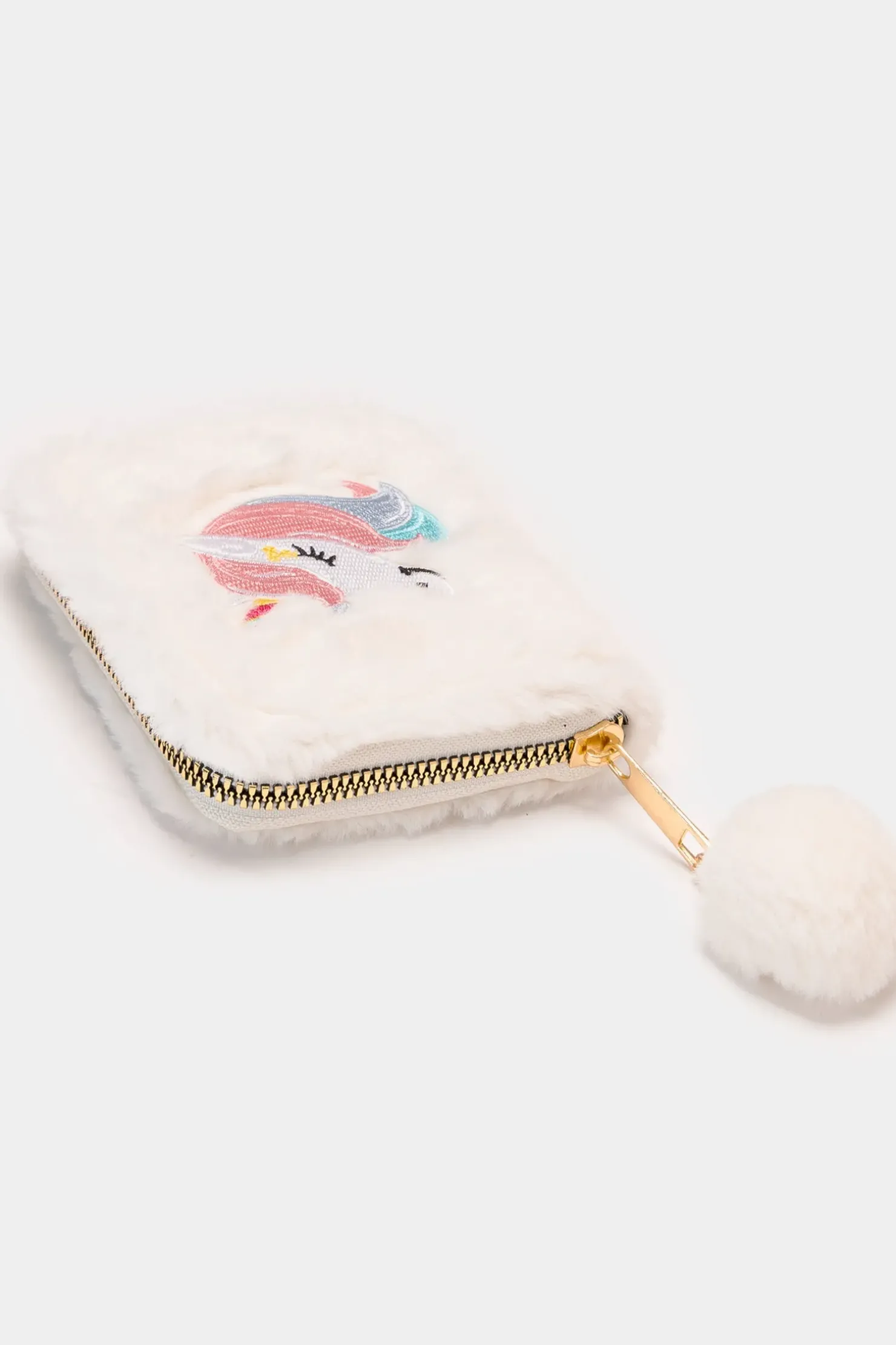 Piazza Italia Portamonete da bambina con unicorno in pelliccia – Bianco Best