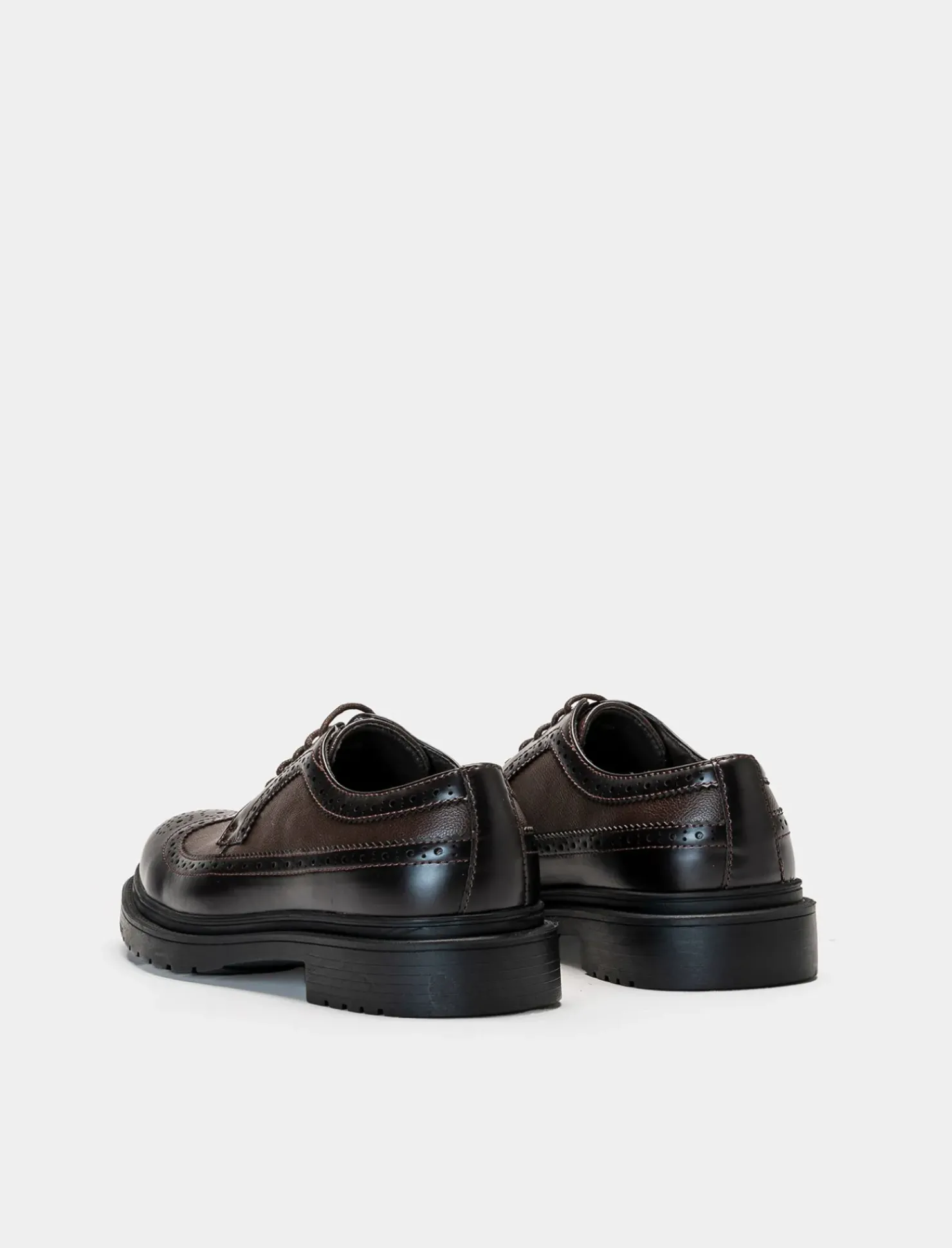 Scarpa stringata all’inglesina in poliuretano color testa di moro con ornamento coda di rondine. Ideali per un look elegante e raffinato, perfette da abbinare a un outfit formale o casual chic. Realizzate con materiali di alta qualità, garantiscono comfort e stile in ogni occasione. Un must-have per chi ama distinguersi con classe. Il prodotto è di colore Moro