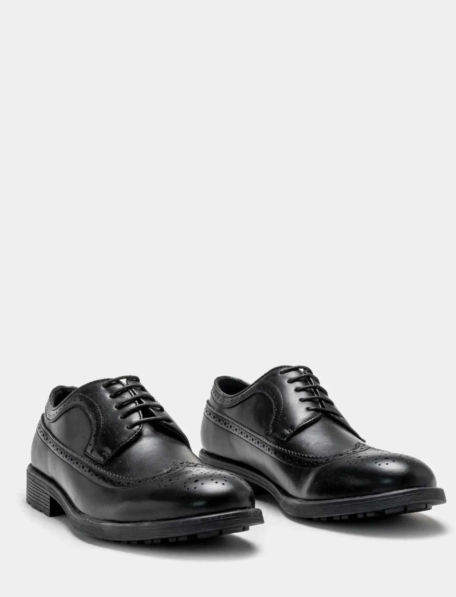 Scarpa stringata all’inglesina, in poliuretano nero con ornamento coda di rondine. Ideale per un look elegante e raffinato, perfetta da indossare in ogni occasione. Realizzata con materiali di alta qualità, garantisce comfort e stile in ogni passo. Un must-have per chi ama distinguersi con classe. Il prodotto è di colore Nero