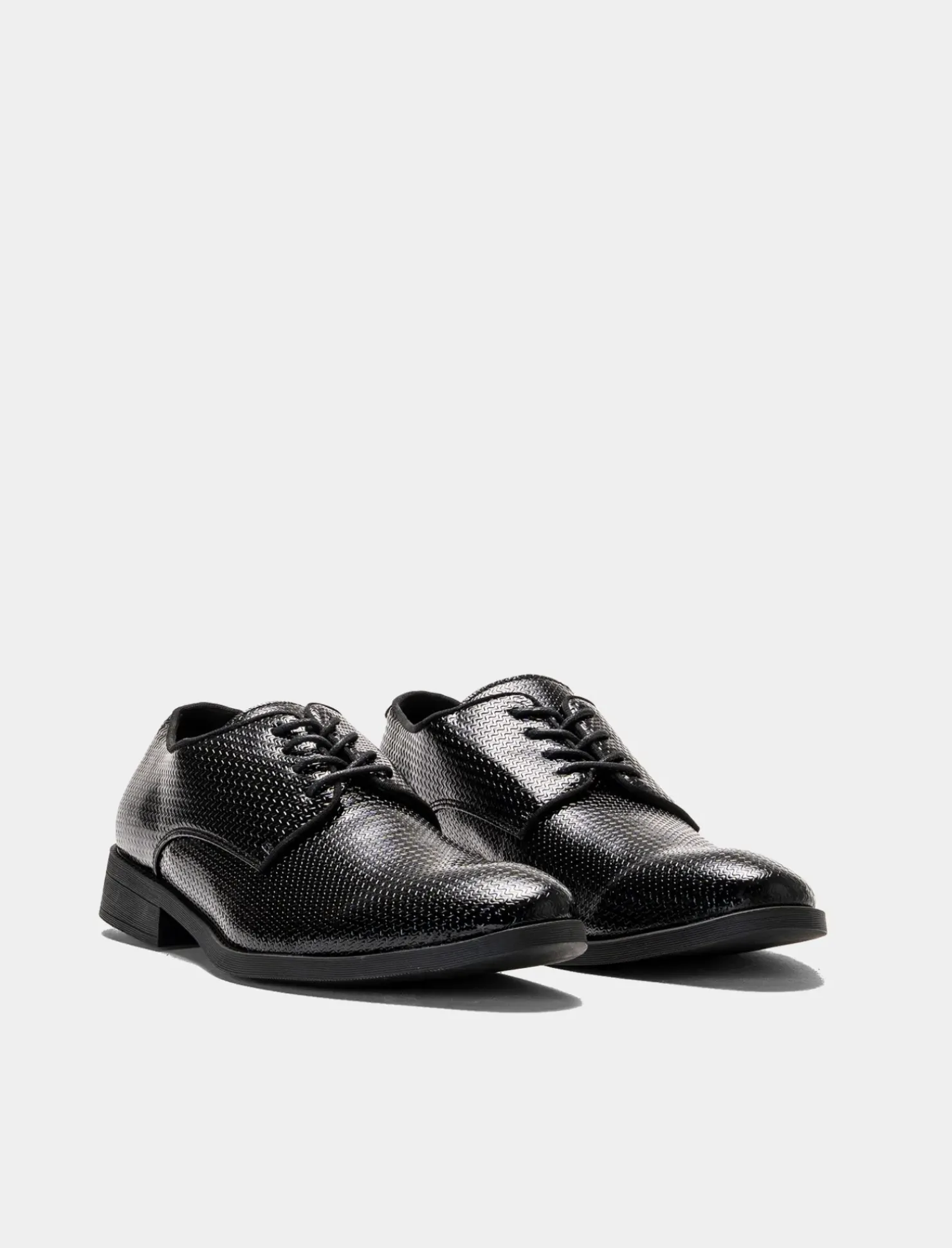 Scarpa stringata in poliuretano nero con texture. Realizzata con materiali di alta qualità, garantisce comfort e stile in ogni occasione. Perfetta da indossare sia per un look formale che casual. Un must-have per completare il tuo outfit con un tocco di classe e originalità. Il prodotto è di colore Nero