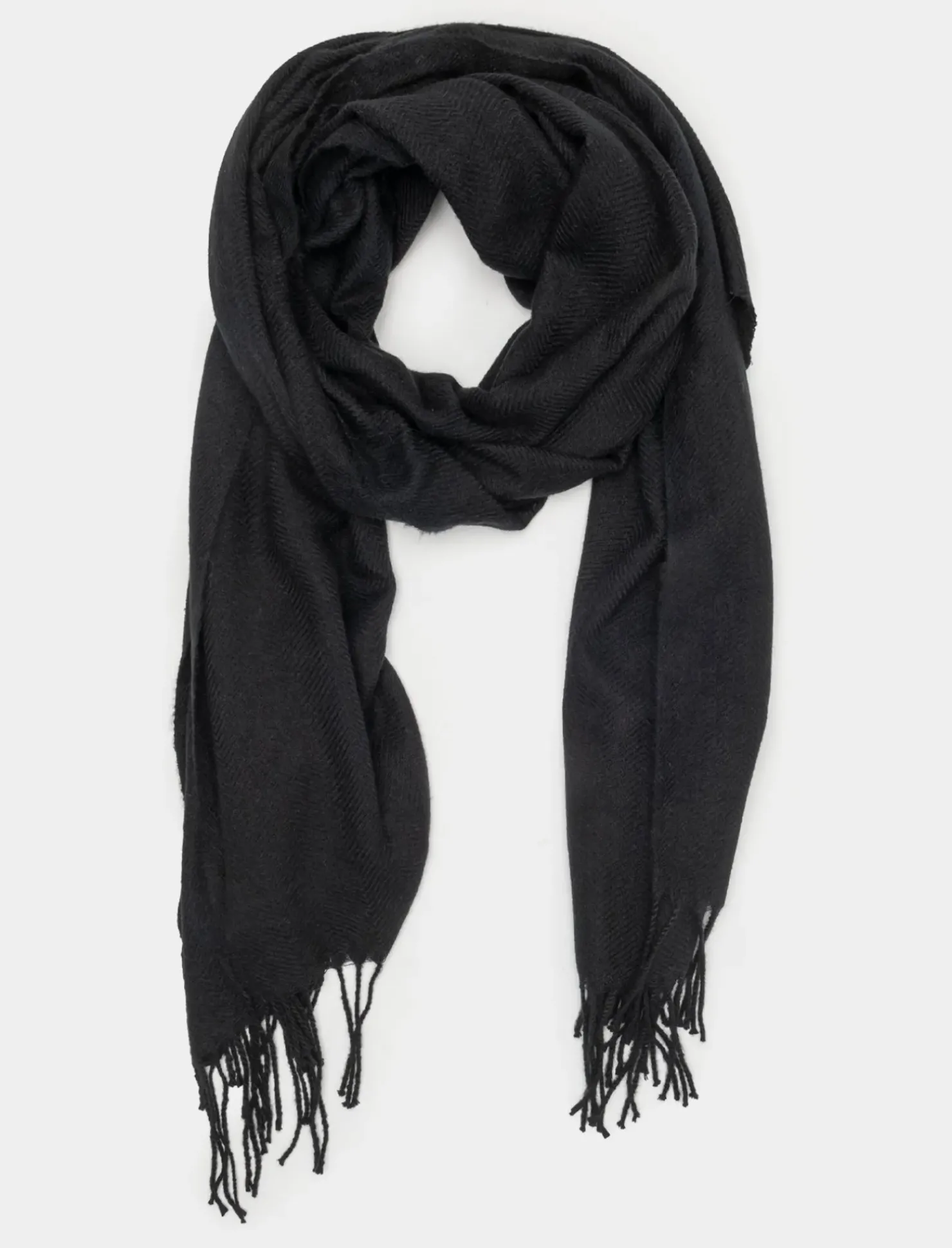Piazza Italia Sciarpa da donna in tinta unita con frange – Nero Fashion