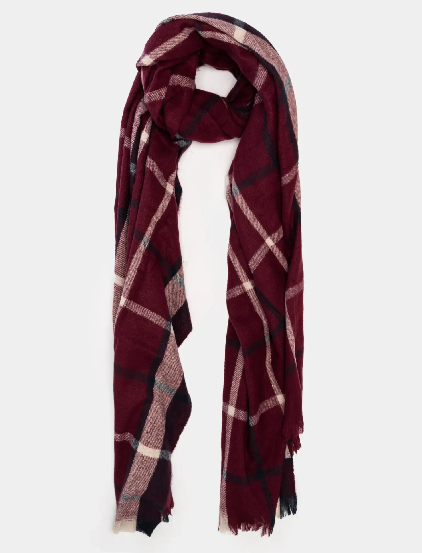 Piazza Italia Sciarpa da uomo a quadri con frange – Bordeaux Rosso Sale