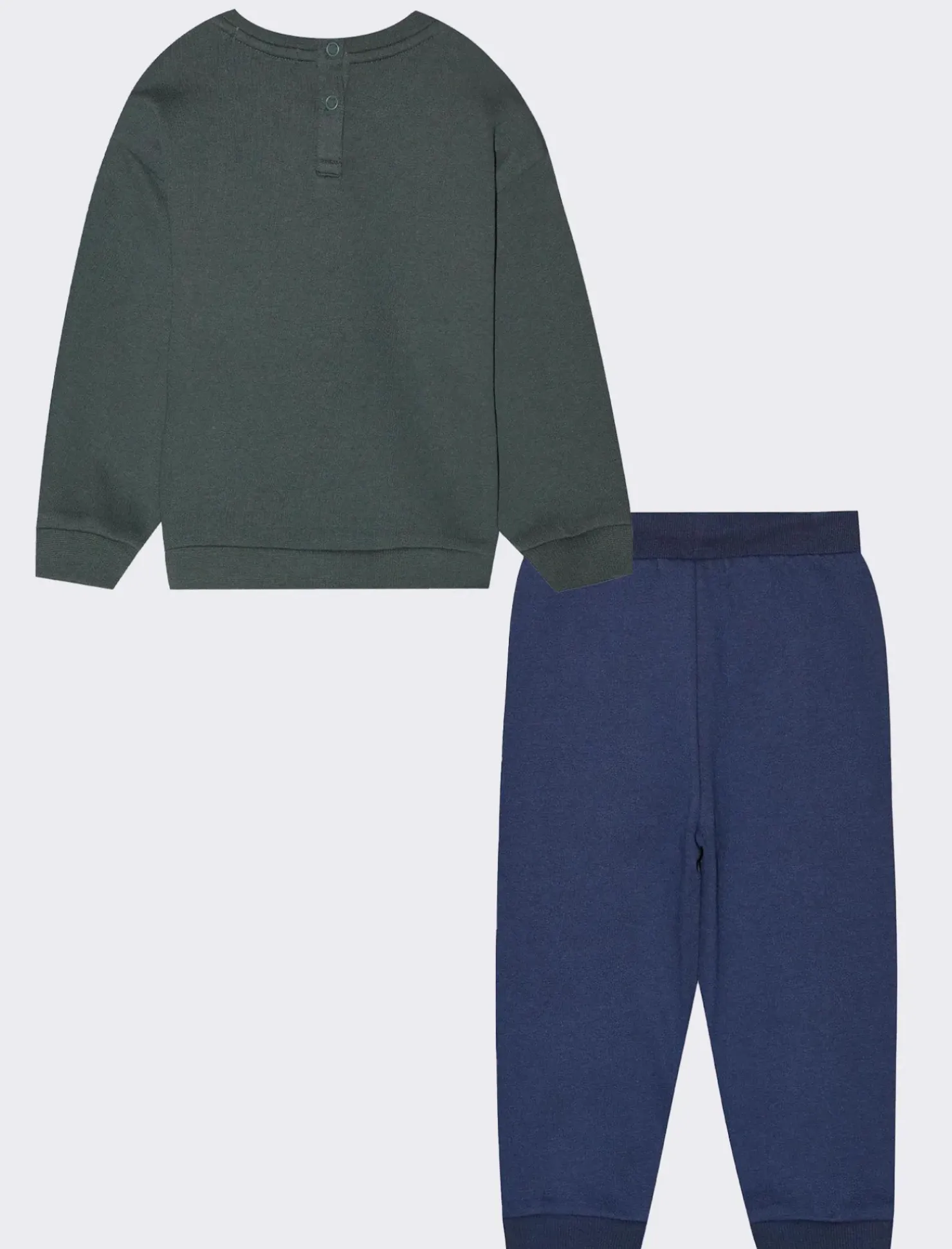 Questo set è composto da una felpa girocollo e un pantalone jogger, entrambi progettati per offrire il massimo del comfort senza rinunciare all’estetica.La felpa girocollo presenta una stampa frontale accattivante, che aggiunge un tocco di personalità e originalità al capo. Il design è moderno e versatile, ideale per essere indossato in diverse occasioni casual.Il pantalone jogger è in tinta unita, con un fondo in costina che garantisce una vestibilità aderente e confortevole. Questo dettaglio aggiunge un tocco di stile sportivo al look, rendendo il pantalone perfetto per essere abbinato alla felpa o ad altri capi del tuo guardaroba. Il prodotto è di colore Verde
