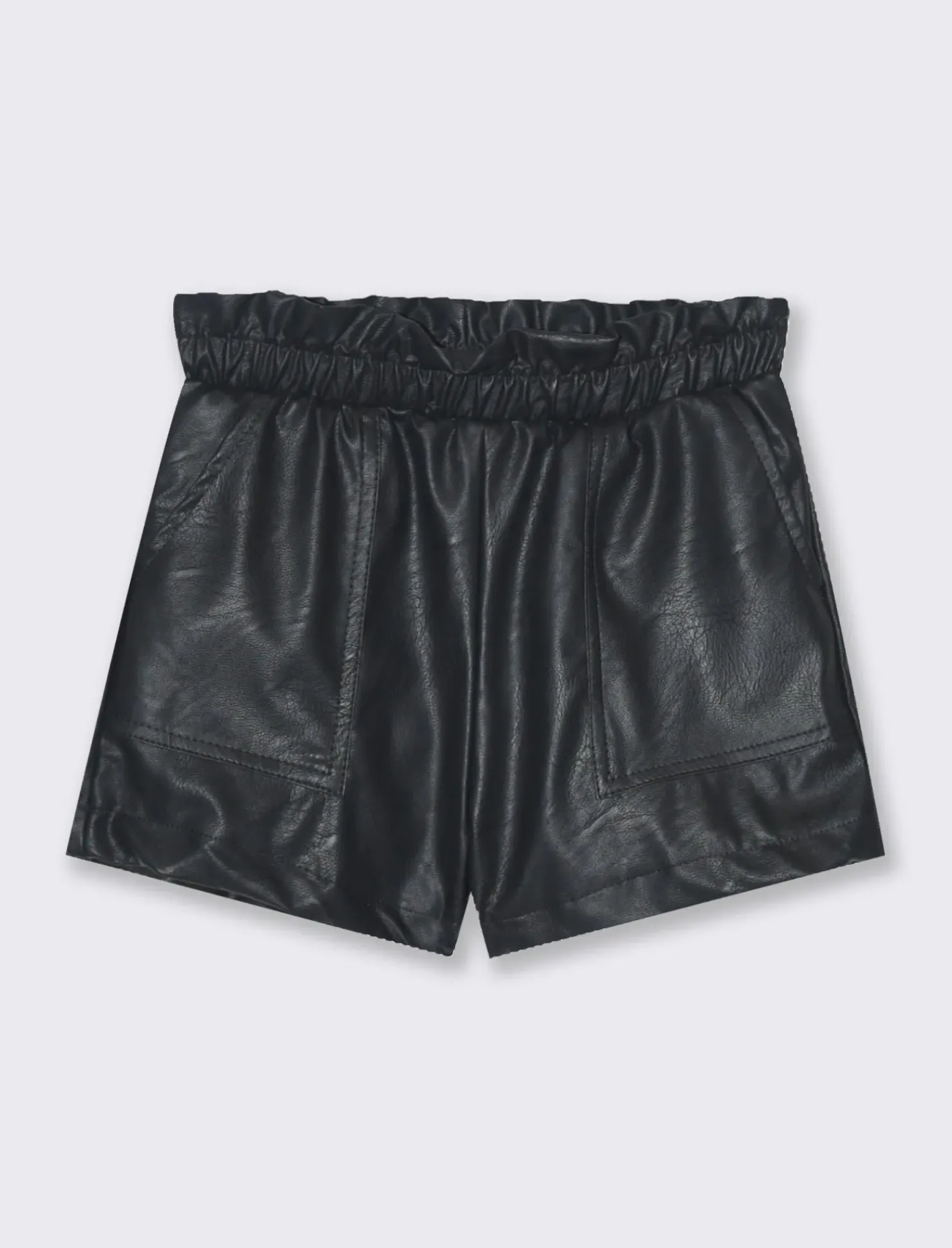 Short da bambina con elastico e rouches in vita, tasche applicate sul davanti e vestibilità regular.Perfetta pe un look glamour. Il prodotto è di colore Nero