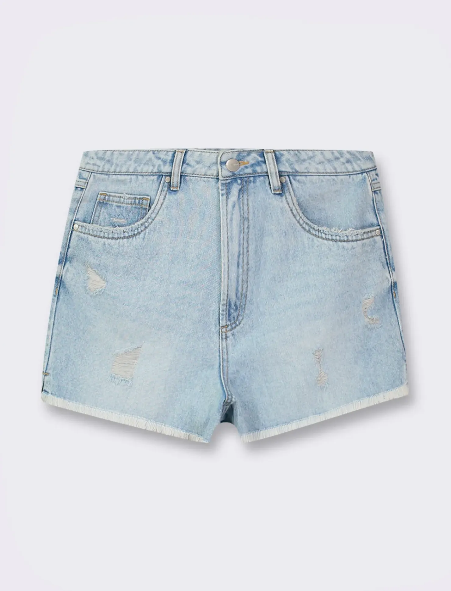 Short paperbag con cintura per un look casual e alla moda. Realizzato in tessuto denim resistente, con un orlo sfrangiato che aggiunge un tocco di originalità. L’apertura con zip e bottone lo rende comodo da indossare. Ideale per un outfit estivo fresco e trendy. Il prodotto è di colore Denim