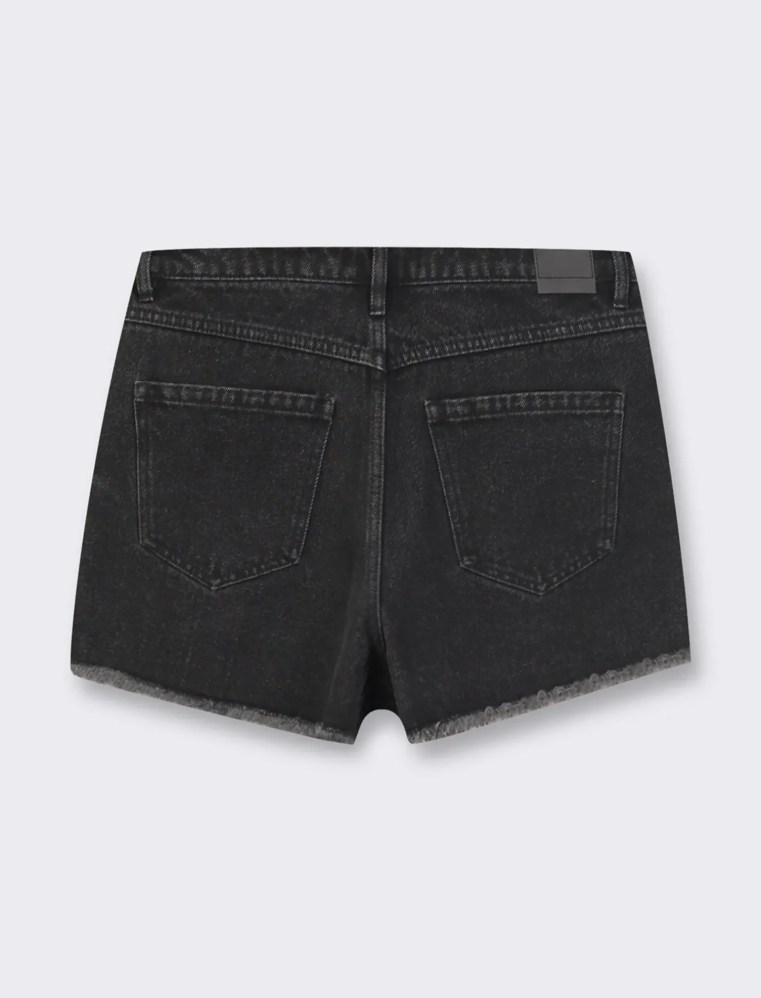 Piazza Italia Short in tessuto denim con orlo sfrangiato,apertura con zip e bottone – Nero Shop