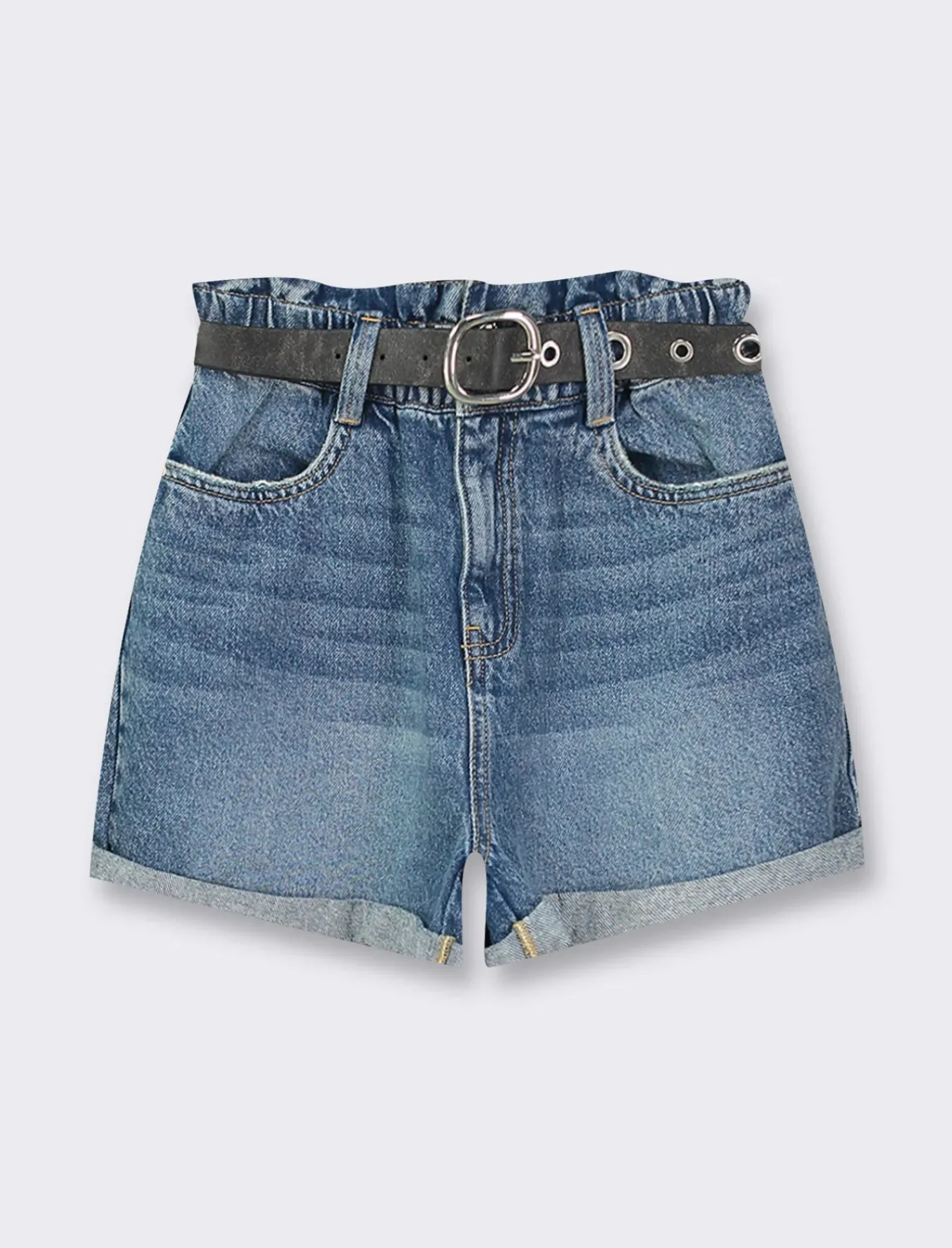 Piazza Italia Short in tessuto vestibilità paper bag con cintura e orlo riscoltato – Denim Blu New