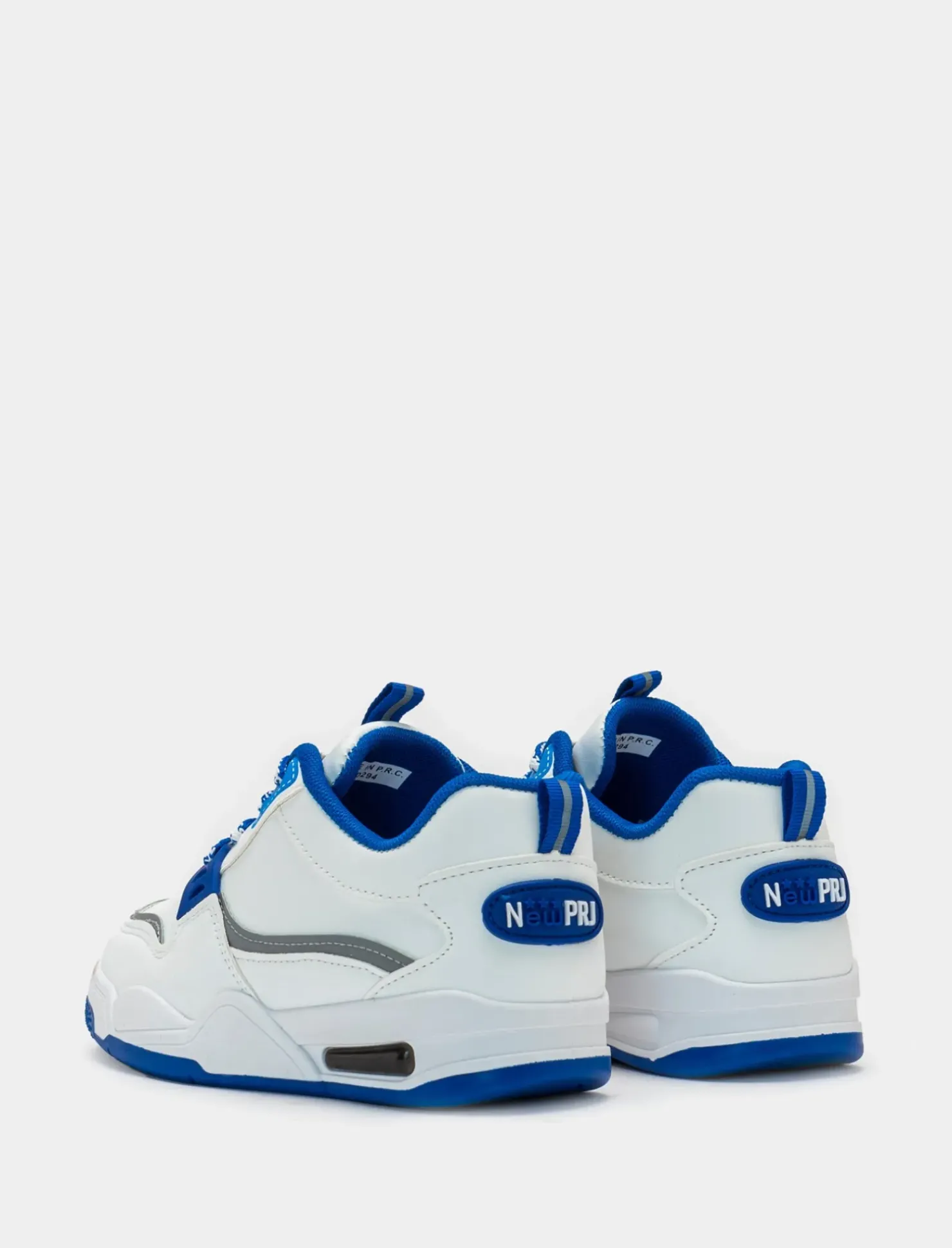 Sneakers a collo alto in poliuretano bianco con riporti blu e grigio. Ideali per un look casual e sportivo, perfette per completare il tuo outfit in modo originale e alla moda. Realizzate con materiali di alta qualità, garantiscono comfort e resistenza per un look sempre al top. Il prodotto è di colore Bianco
