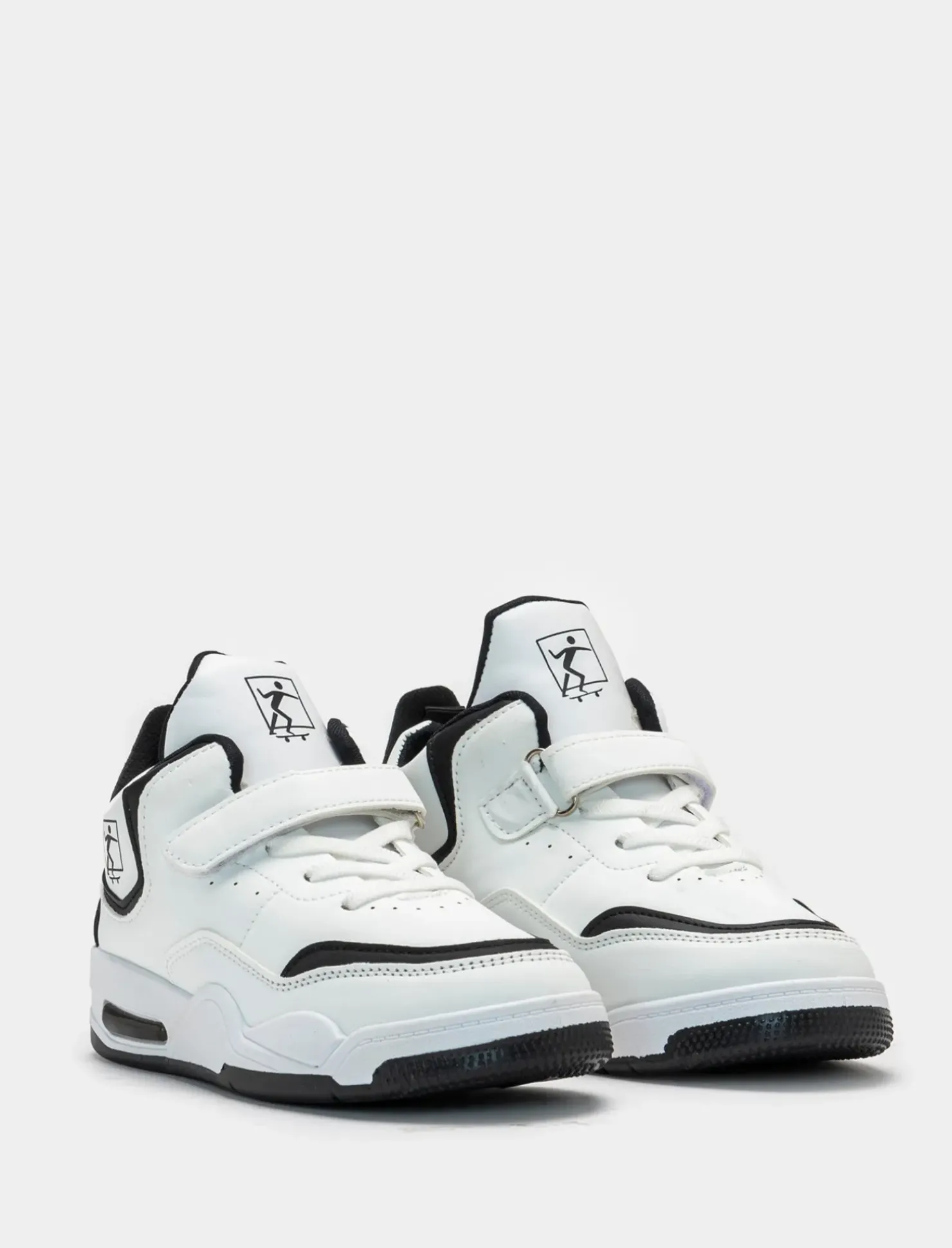 Sneakers a collo alto con strappo, realizzate in poliuretano bianco con dettagli neri. Ideali per un look sportivo e alla moda, perfette per completare il tuo outfit con stile e comfort. Adatte per qualsiasi occasione, dal tempo libero alle uscite con gli amici. Il prodotto è di colore Bianco