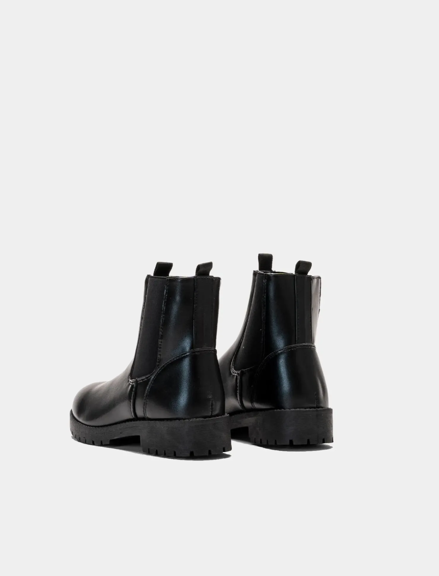 Stivaletto chelsea realizzato in poliuretano, un materiale resistente e leggero, ideale per ogni stagione. Le fasce elastiche laterali garantiscono una calzata comoda e pratica, adattandosi perfettamente al piede. Disponibile in due eleganti varianti di colore, questo stivaletto si presta a molteplici abbinamenti, rendendolo un accessorio versatile per il guardaroba. Il prodotto è di colore Nero