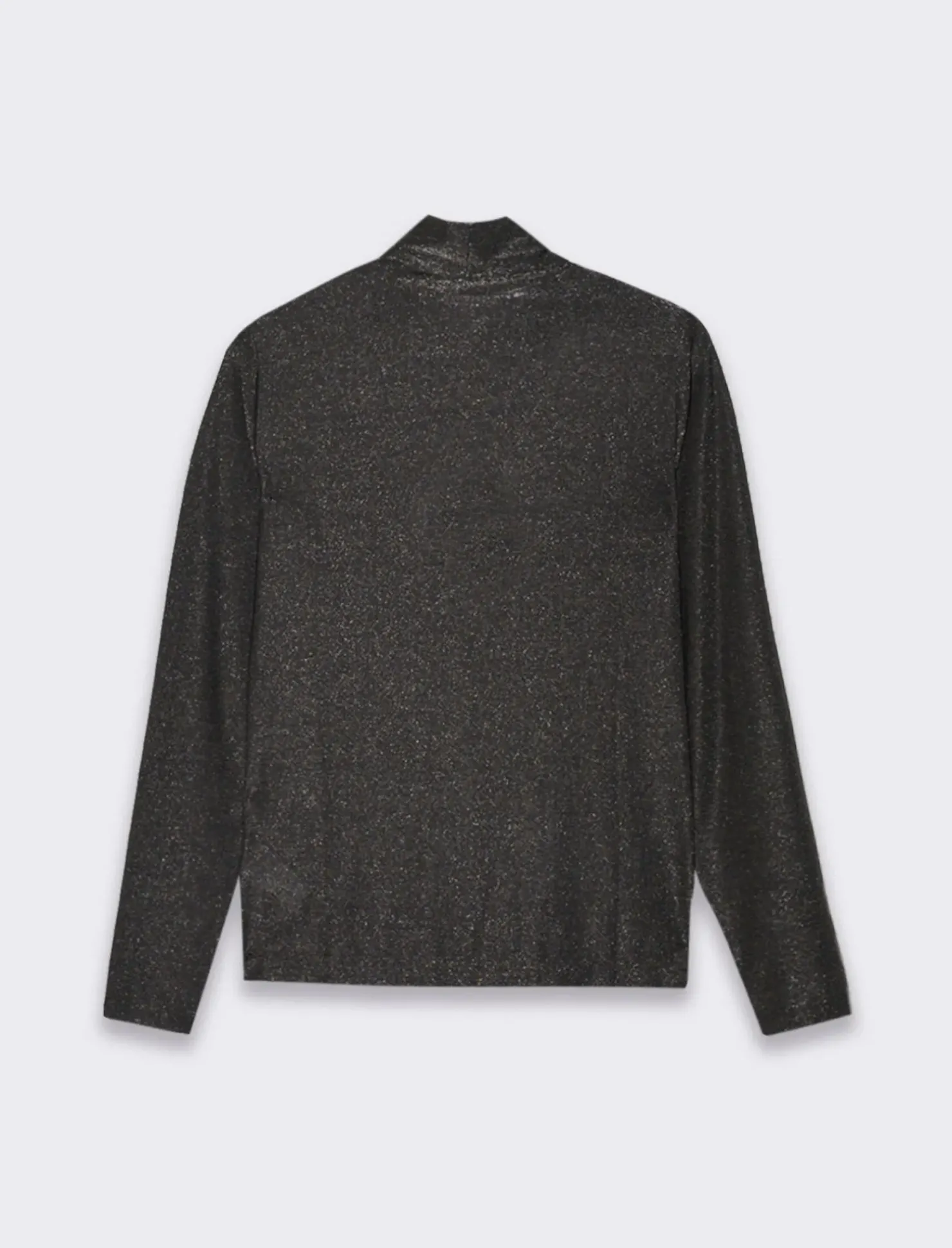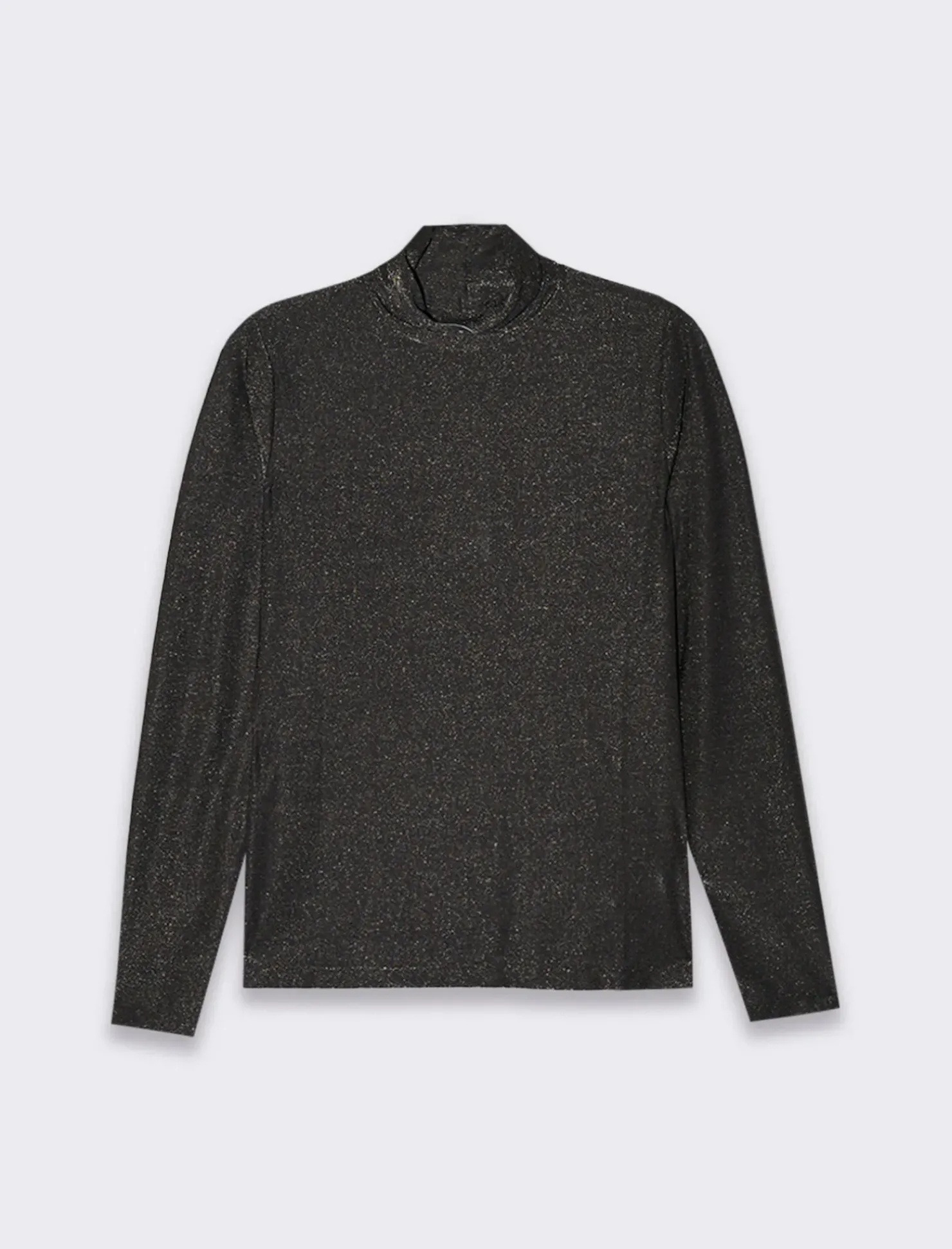 Piazza Italia T-shirt a collo alto con filo effetto metallizzato vestibilità slim – Nero Store