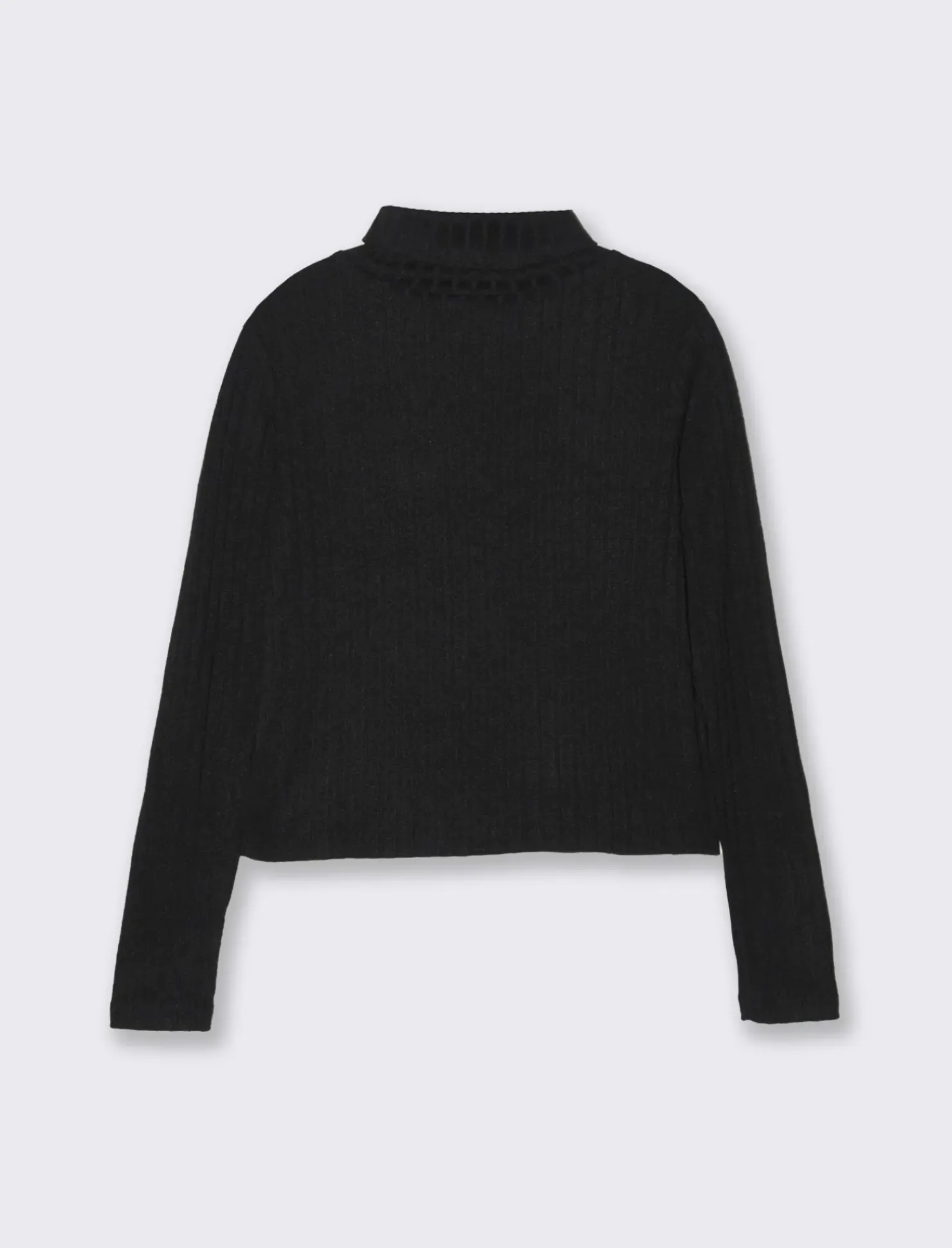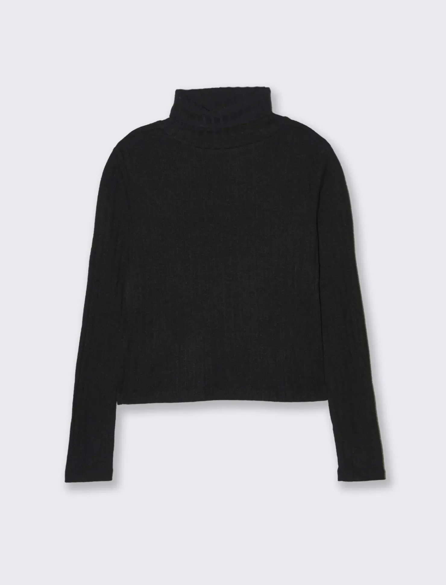 Piazza Italia T-shirt a collo alto e manica lunga e tessuto lavorato a coste – Nero Fashion