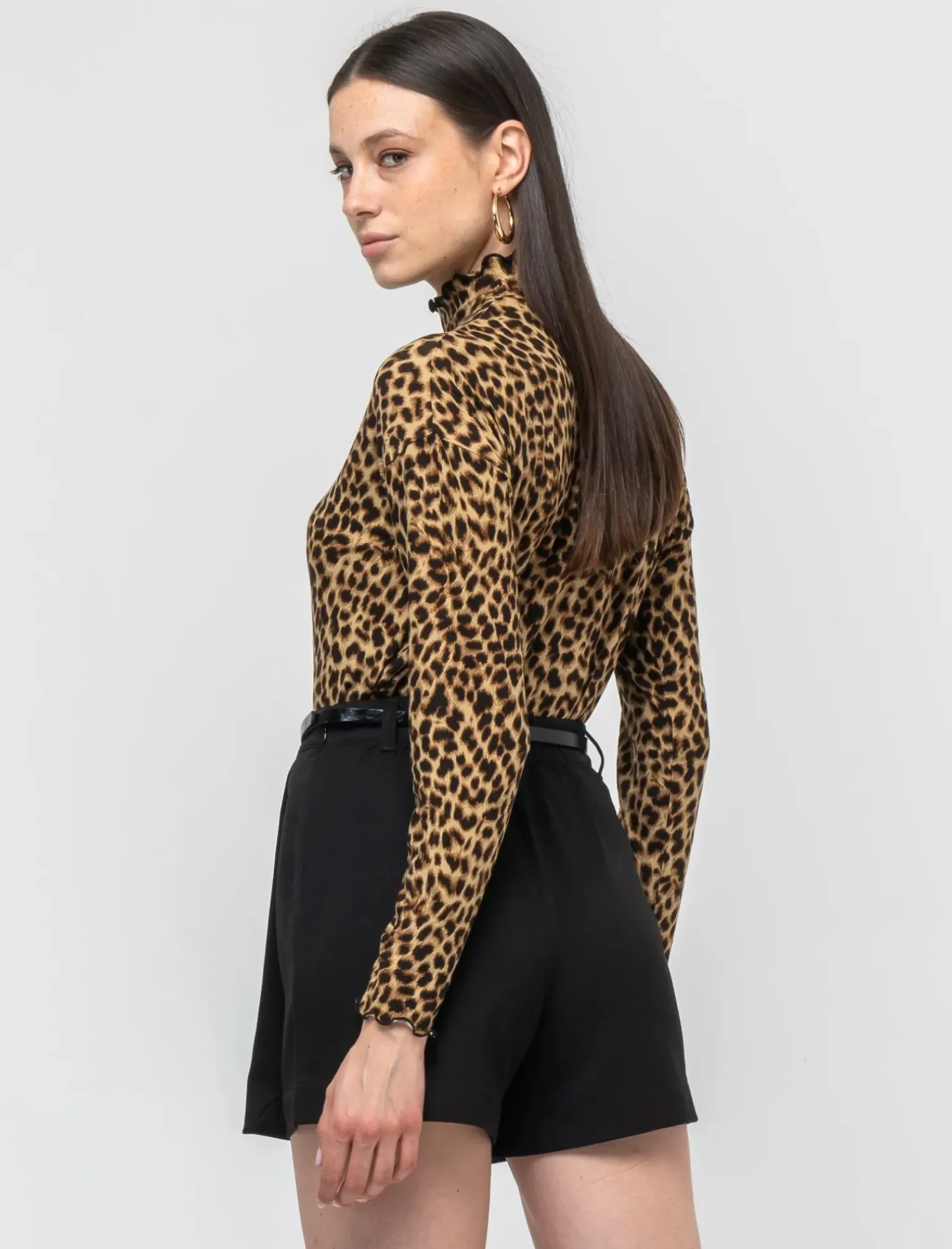 T-shirt a collo alto stampata per donna, perfetta per un look casual ma alla moda. Realizzata in morbido tessuto, ideale per le giornate più fresche. La stampa aggiunge un tocco di originalità e personalità al tuo outfit. Il prodotto è di colore var 1